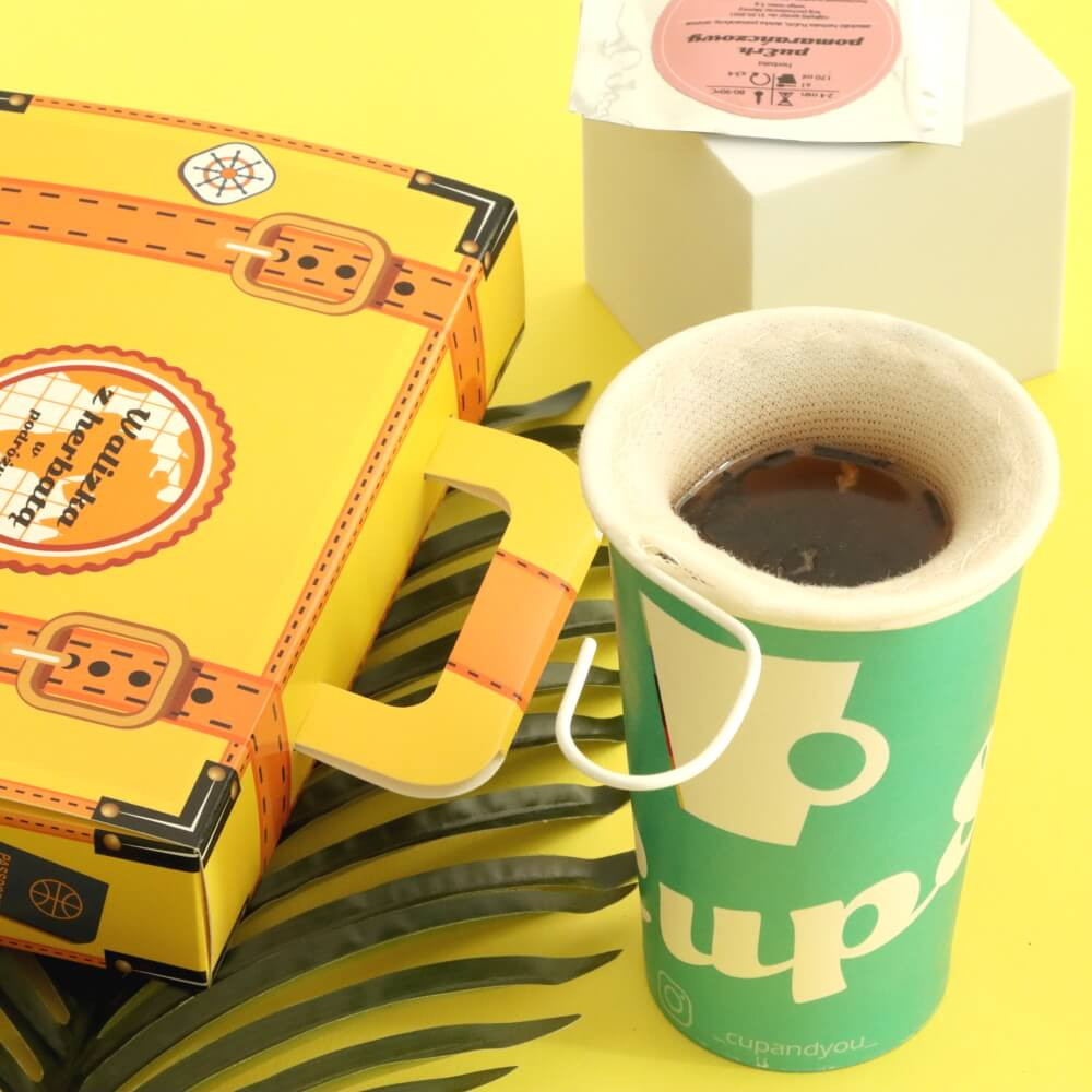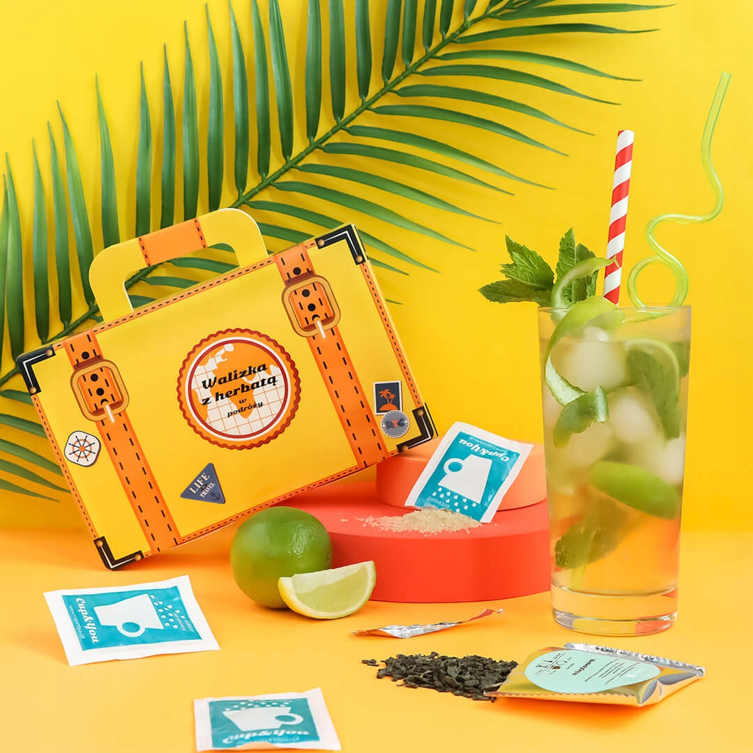 Чемодан для чая для путешествий создан для поездок, пикников и семейных встреч на природе. Композиция из 14 чайных пакетиков разных вкусов и видов, с хлопковым фильтром и пакетиками тростникового сахара будет означать, что вам не придется беспокоиться о необходимых расходных материалах для приготовления чая. Все, что вам нужно, это чашка и вода! Дополнительно, чтобы набор идеально вписался в атмосферу путешествия, все было заключено в упаковку, имитирующую дорожный чемодан. Даже находясь вдали от дома, вам не придется отказываться от любимых чаев! В жаркие дни вы можете заварить чай, а затем добавить кубики льда и получить освежающий ледяной чай! «Теплый» вариант чайных пакетиков идеален для гостиничного номера или даже прохладных вечеров у камина. Наслаждайтесь вкусным, освежающим вкусом чая, где бы вы ни находились!