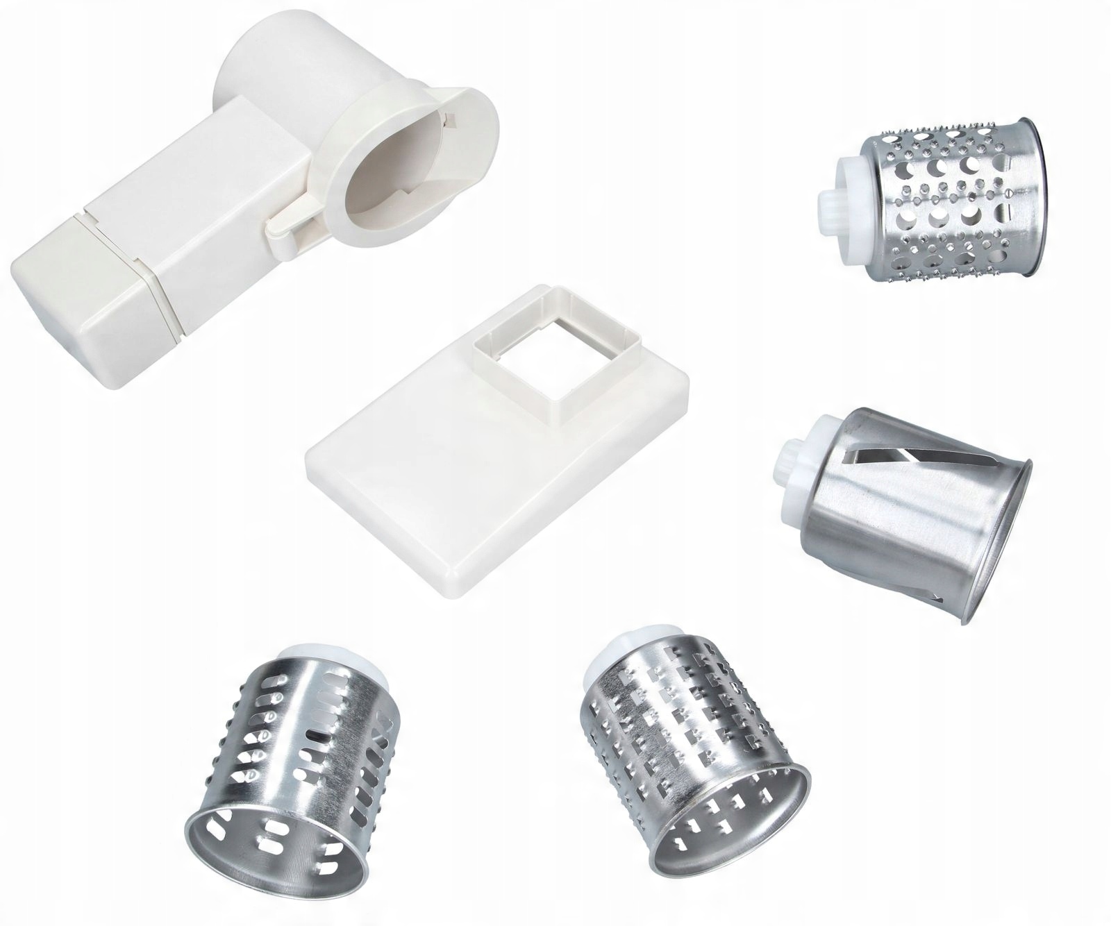 Комплект: 4 терки, камера, защелка, загрузочная чаша, толкатель