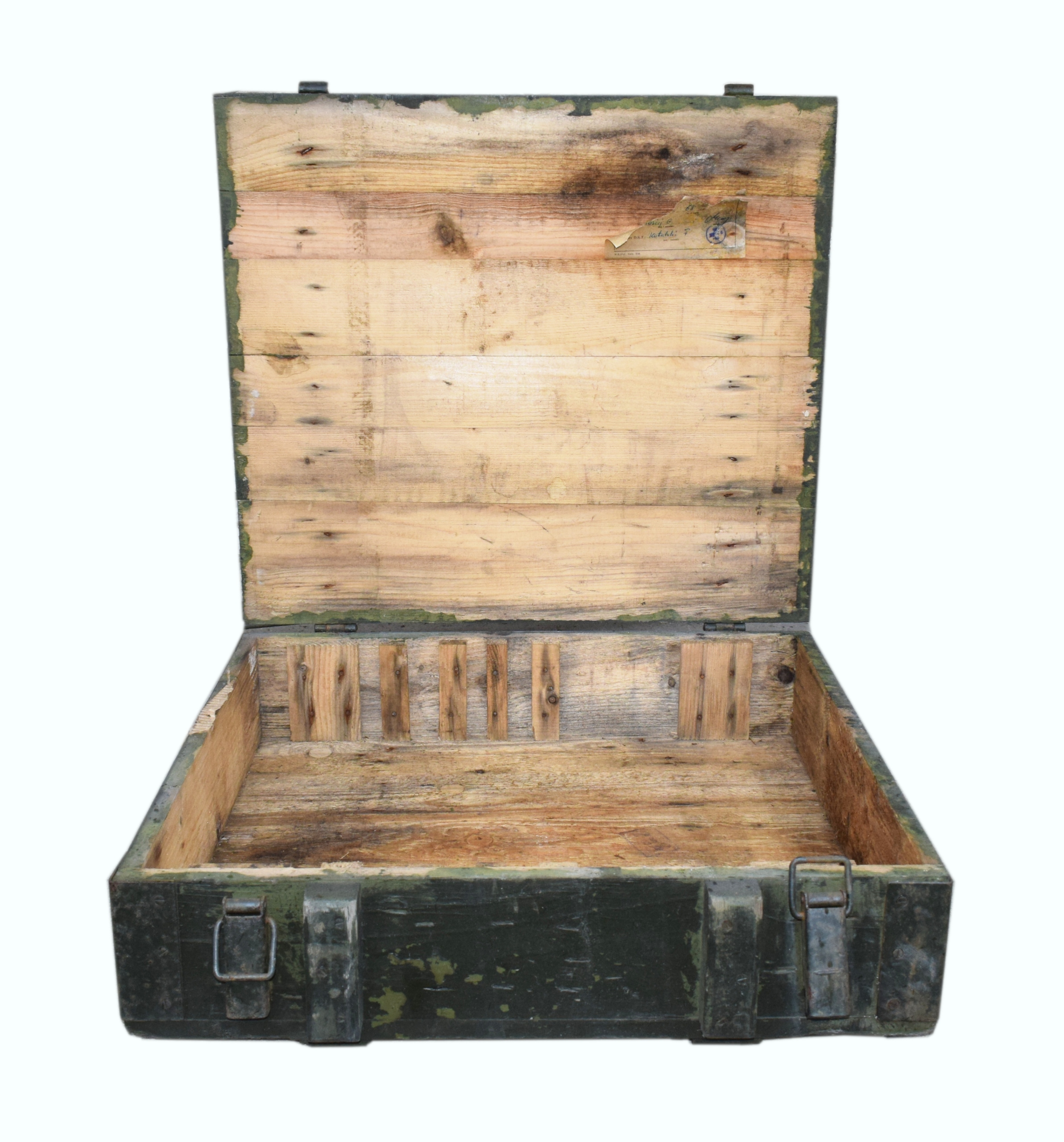 Ящик закрывается на две металлические пряжки, оснащенные металлическими пряжками. углы.