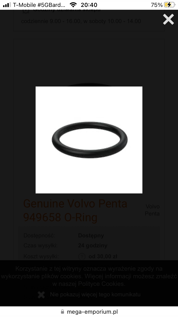 Оригинальное уплотнительное кольцо Volvo Penta 949658