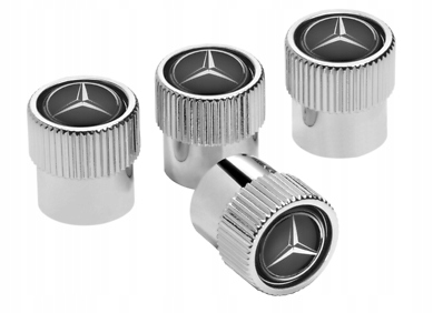 Декоративные колпачки клапанов, хромированные. Тисненый логотип в виде звезды спереди под прозрачным пластиком. Набор из 4 штук в блистере. Также подходит для клапанов контроля давления в шинах.