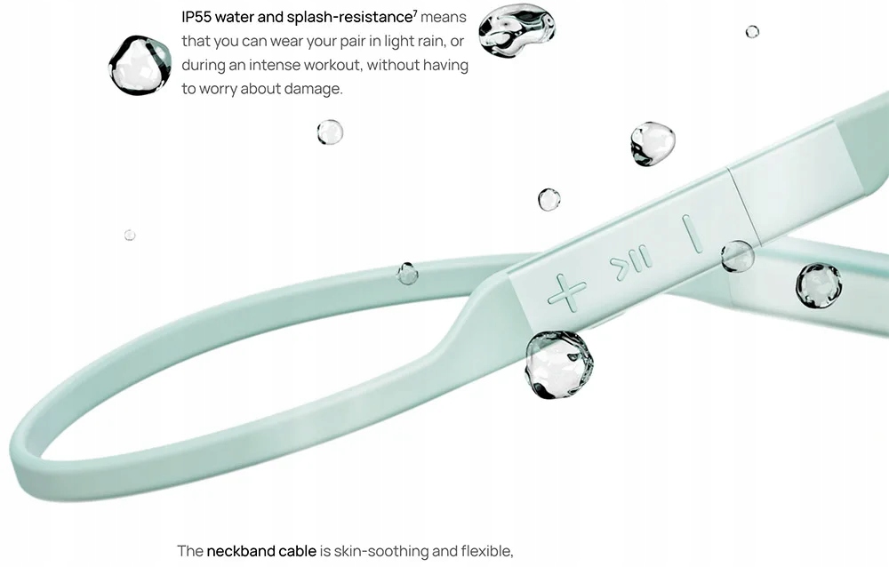 Защита от воды и брызг IP55 означает, что вы можете носить наушники под небольшим дождем или во время интенсивной тренировки, не беспокоясь о повреждениях.