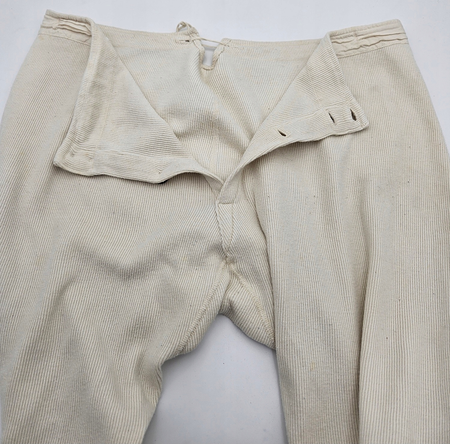 Оригинальный элемент униформы шведского солдата военного и послевоенного периода. Джонсы из старых запасов шведской армии, в очень хорошем состоянии (можно стирать). Это, безусловно, диковинка для коллекционеров униформы того периода. Материал похож на хлопок с примесью шерсти, конкретной информации о нем нет. Цвет экрю.