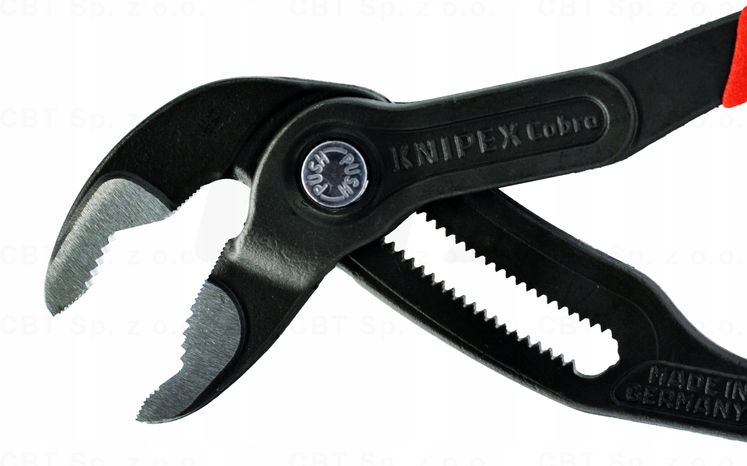 KNIPEX Cobra® — трубогубцы нового поколения. Больше не нужно тратить время на регулировку открытия челюсти до нужного размера. Просто поместите верхнюю челюсть на предмет, который вы держите, нажмите кнопку и потяните нижнюю челюсть. Это так просто!