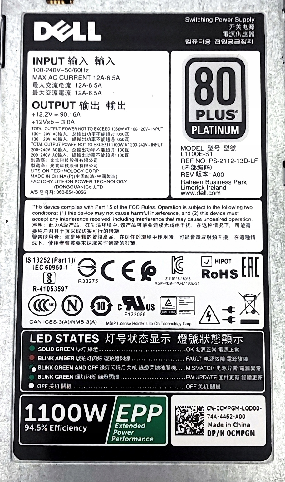 Оригінальний блок живлення DELL L1100E-S1, 0CMPGM, 1100W, PowerEdge R520 R620 R720 R820