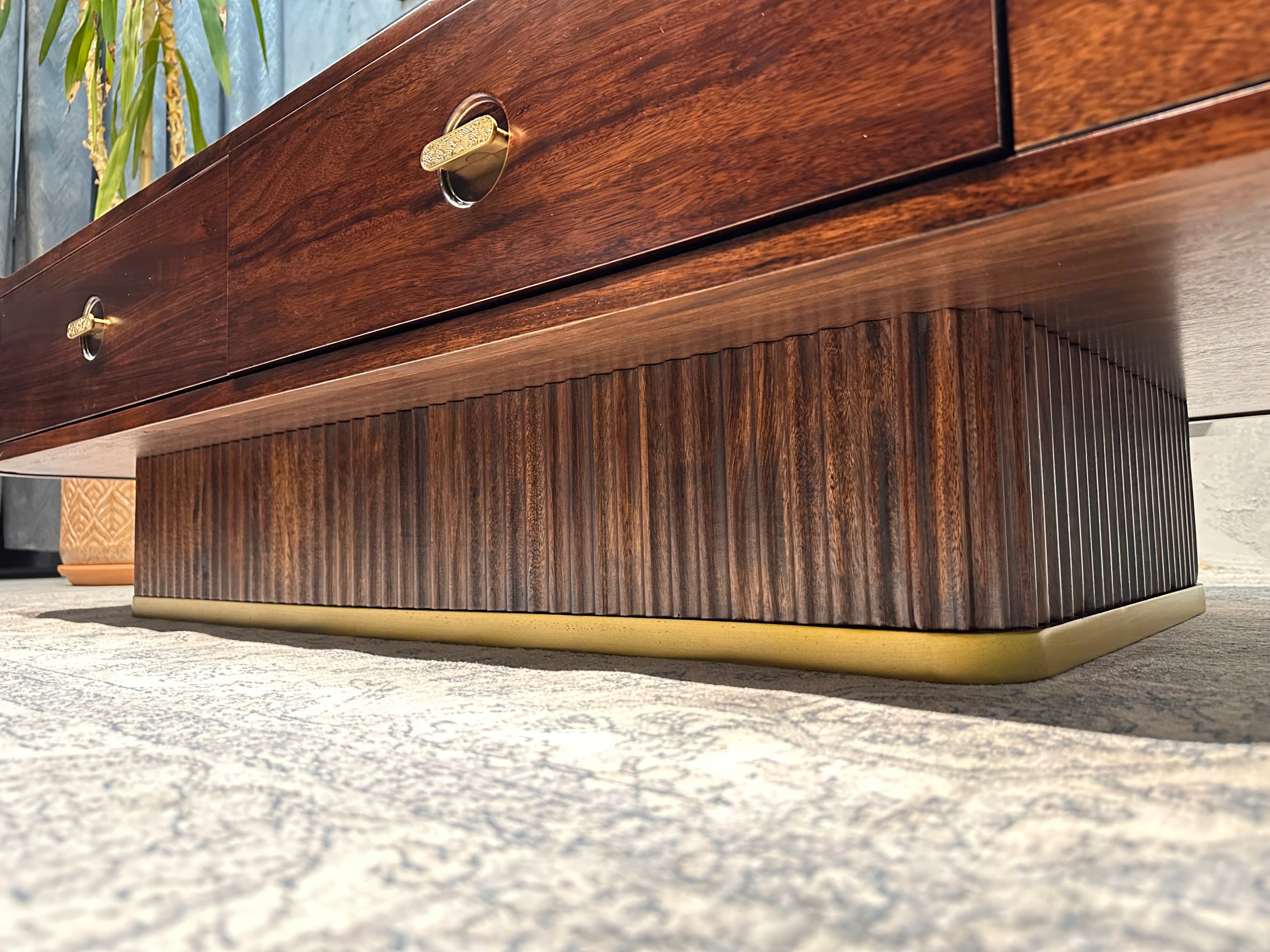 Оригинальный журнальный столик Hanako, скамейка дерева Heban, Brass