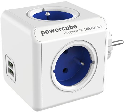 PowerCube Original USB, разветвитель 4 розетки + 2xUSB, синий, ALLO-2202BL