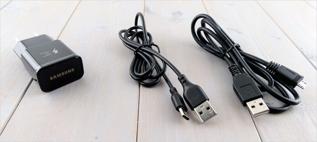 ОРИГИНАЛЬНОЕ сетевое зарядное устройство Samsung с двумя USB-кабелями (micro USB и USB-c) для телефонов и планшетов Samsung (и других марок)