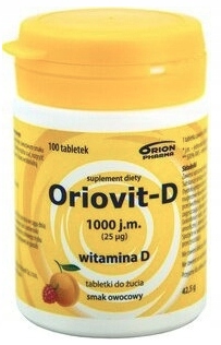 oriovit -d 1000 J.M. - пищевая добавка в виде небольших жевательных таблеток. Продукт, предназначенный для детей старше 6 лет и взрослых.