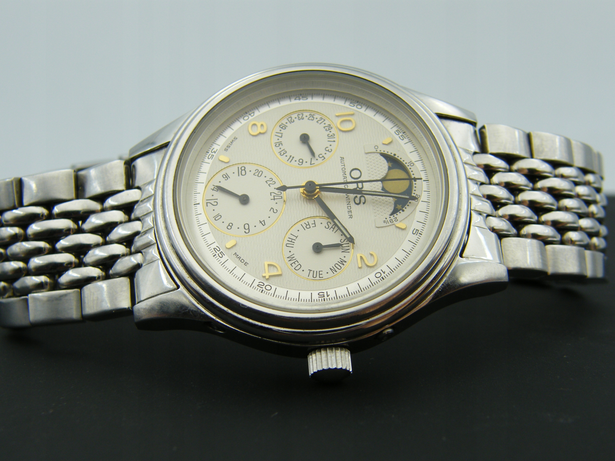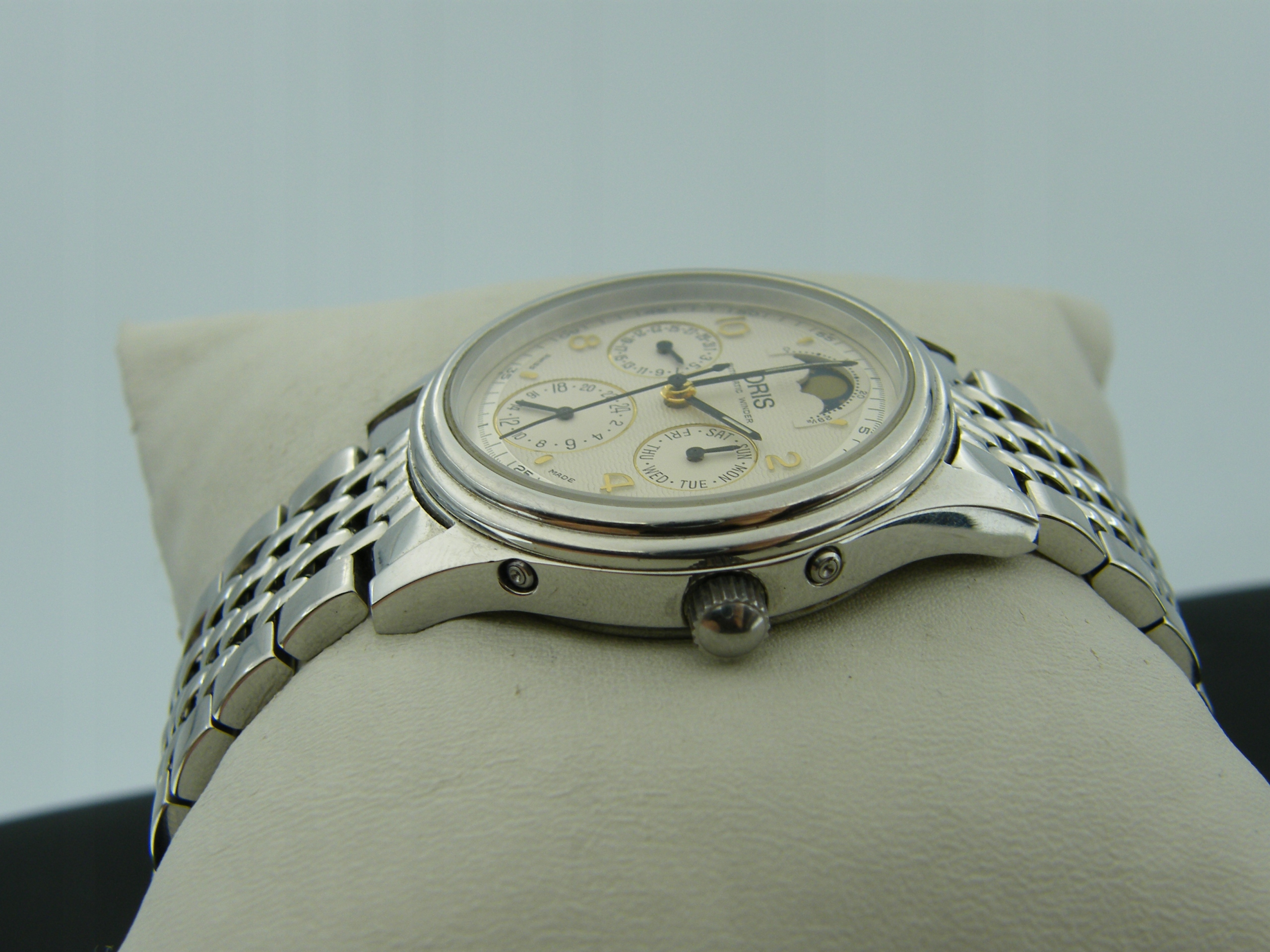 Автомат Oris Triple Date Moonphase с красивым стальным циферблатом на браслете