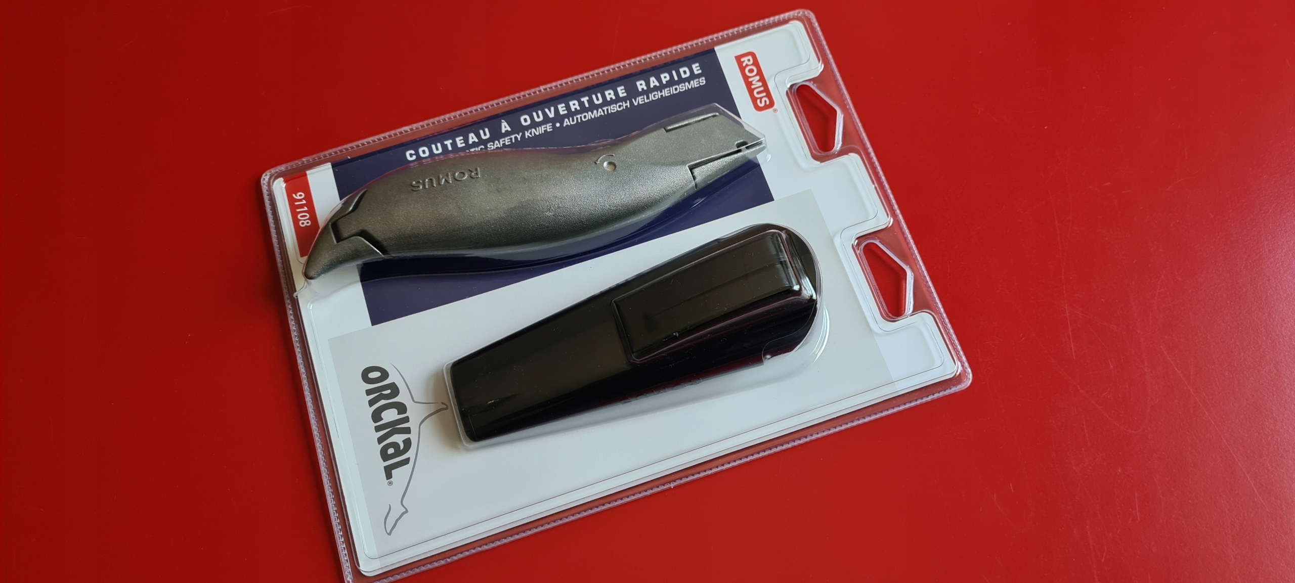 Nova Object Technologie Sp. J. предлагает профессиональный нож Orckal 91108 с алюминиевым телом. Открыт с ручкой, размещенной в середине. Поставляется в волдырь с пластиковой крышкой. Возможность установить прямой или зацепленный лезвие, то есть то же самое, что и в ноже Дельфина.