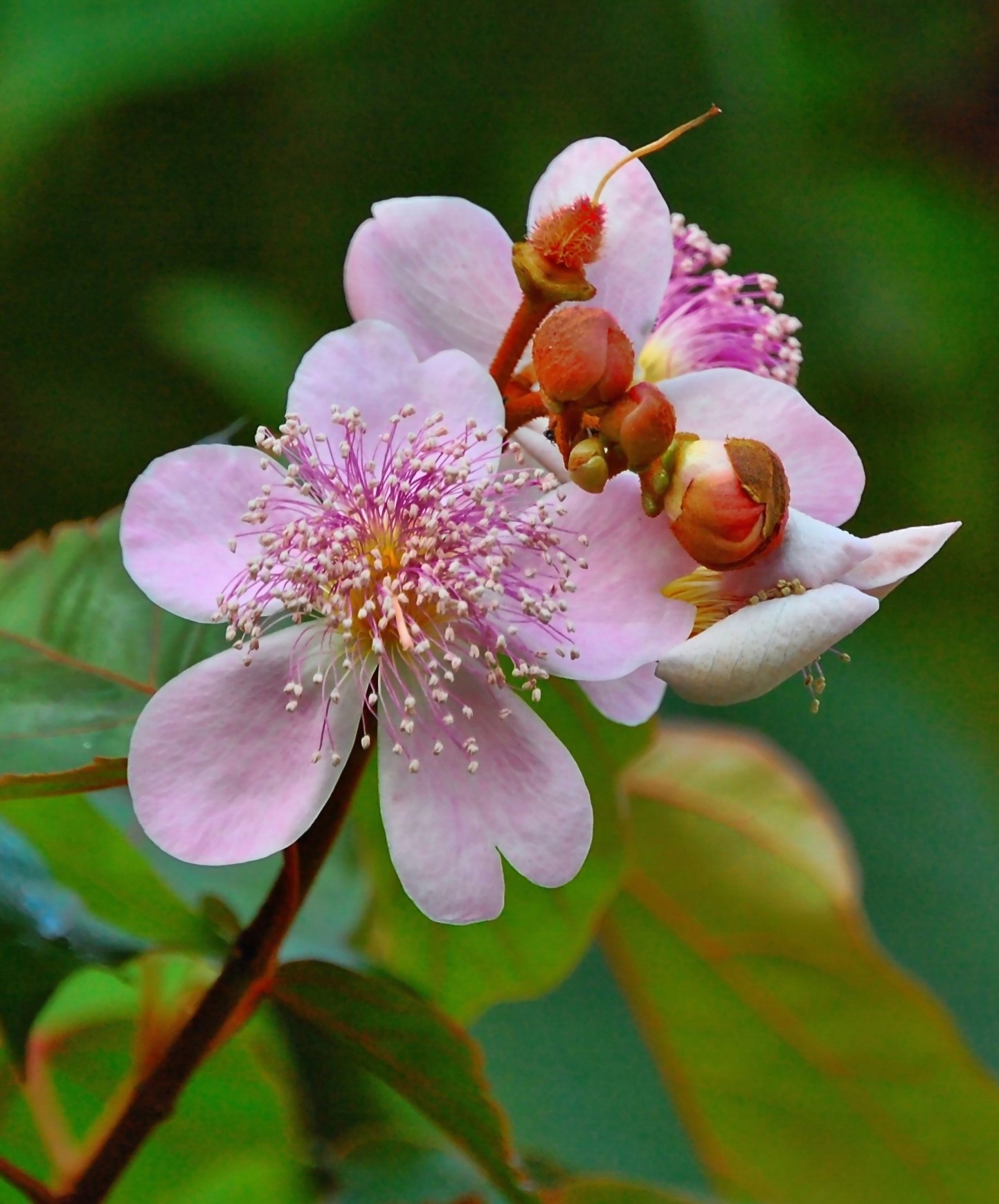 имеет кластеры больших до 5 см, яркие, белые или розовые красивые ароматные цветы. Эти цветы напоминают отдельные дикие розы и появляются на концах ветвей. Фрукты-это капсулы, расположенные в группе красных коричневых стручков, покрытых мягкими шипами. Каждая капсула или стручка содержит от 30 до 45 конических семян, покрытых тонким воском, кровопролитированной покровом. Полностью зрелый стручок высыхает, затвердевает и вырывает, тем самым раскрывая семена.