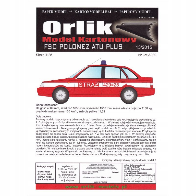 Заказывая «Орлик А030 - ФСО Полонез Ату 1:25» данный товар из каталога «Автомобили», вы можете получить дополнительную скидку 4%, если произведете 100% предоплату. Размер скидки вы можете увидеть сразу при оформлении заказа на сайте. Внимание!!! Скидка распространяется только при заказе через сайт.