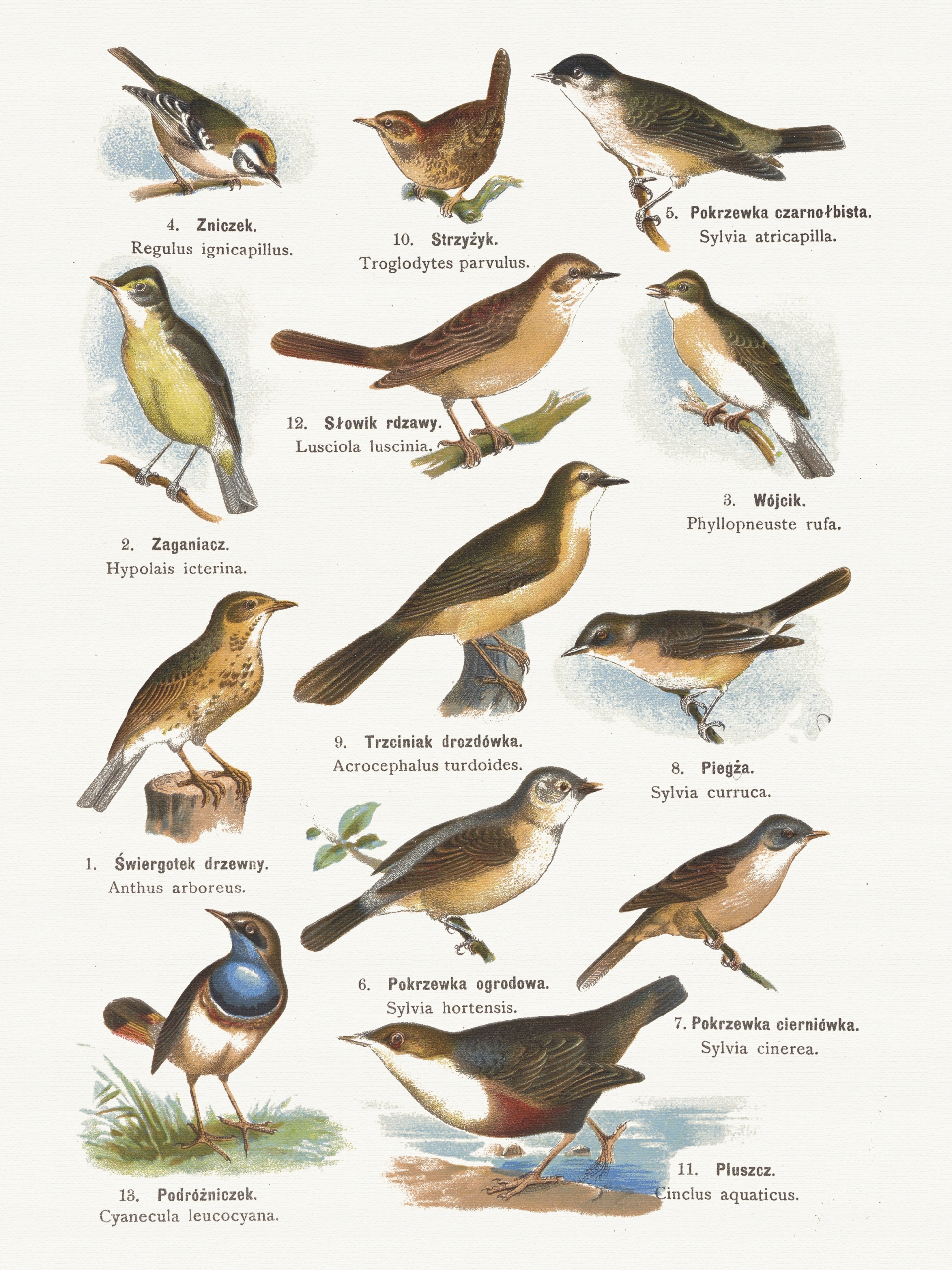 ОРНИТОЛОГИЯ Соловей Крапивник Рид 40 х 30 см.