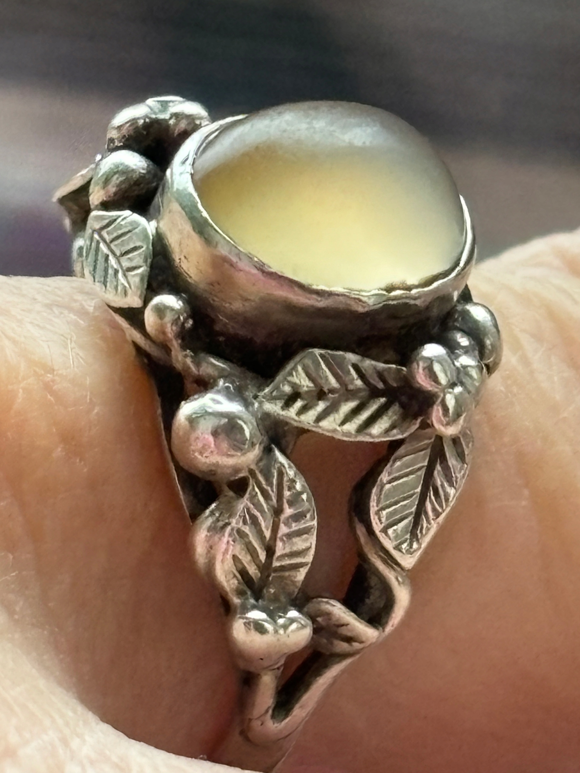 ORNO pierścionek stary srebrny agat naturalny liście