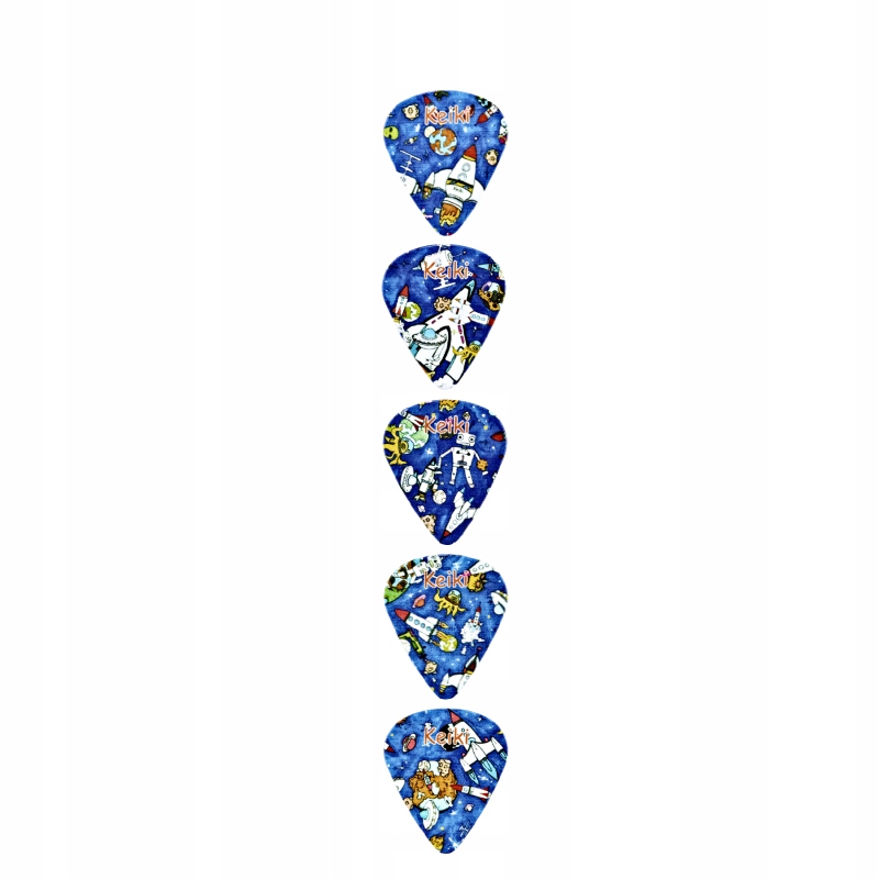 Гибкие медиаторы для гавайской гитары и гитары с узором, отсылающим к серии укулеле Keiki K2 от Ortega.
