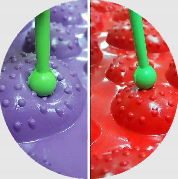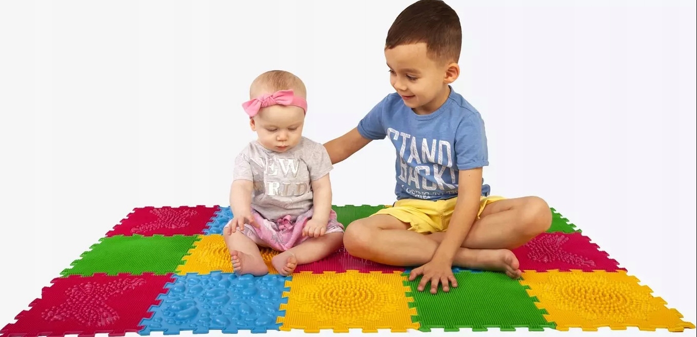 Рельеф поверхности соответствует форме здоровой стопы ребенка, а различия между элементами мата усиливают давление на нервные окончания стопы и обеспечивают поверхностный точечный массаж.
