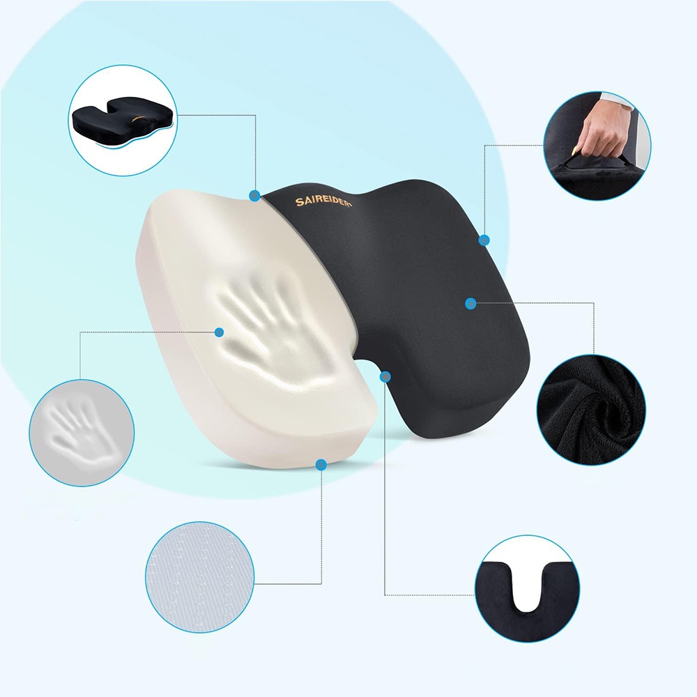 ✅ 【СИДИТЕ КОМФОРТНО БЕЗ БОЛИ】: Наша подушка для стула для копчика и подушка для поддержки поясницы обеспечивают отличную поддержку спины и облегчают распространенные симптомы, возникающие в результате давления веса вашего тела на нижнюю часть копчика. Устранение этого давления поможет вам облегчить ишиас, боль в пояснице, грыжу межпозвоночного диска, геморрой или повреждение копчика.