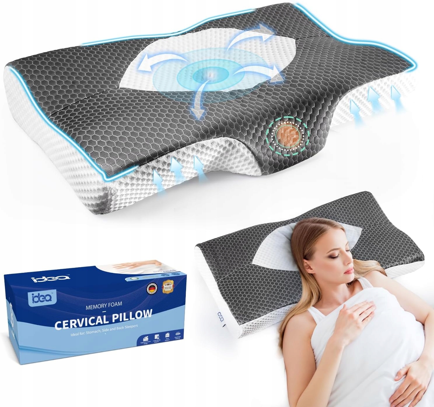 Подушка IDEA, эргономичная подушка из пены с эффектом памяти, ортопедическая подушка, подушка для сна на боку, спине и животе, подушка для шеи, подушка против храпа с чехлом