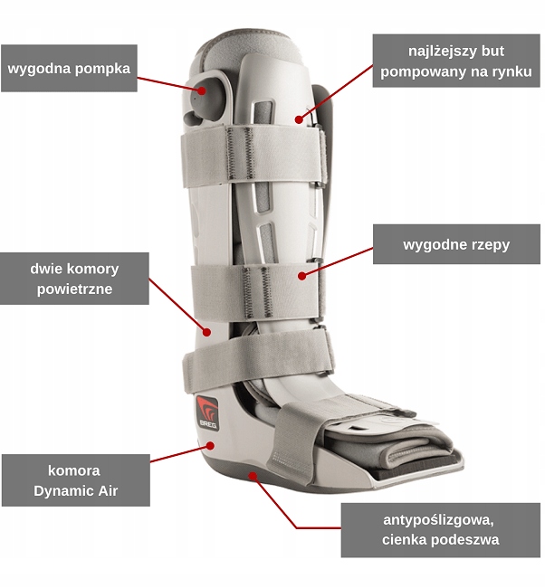 ✅ воздушные камеры - две воздушные камеры , накачанные с использованием встроенного -ин Кнопка, которая расположена на корпусе обуви, позволяет точно установить обувь к ноге, отличную стабилизацию и регулировку отека. Динамическая воздушная камера, встроенная в подошву пятки, поглощает и поглощает энергию удара, возникающего во время контакта пятки с землей, что уменьшает боль и улучшает комфорт для ходьбы > ✅ анти -Слип -подошва b> - красная зона на подошве со специальным протектором изготовлена из мягкого резина, которая обеспечивает безопасную и стабильную походку даже на скользких поверхностях. обувь универсальна , соответствует как правую, так и левую ногу. > подтвержденный сертификат. Это гарантирует качество, долговечность и безопасность для пользователя. Производитель ортоза является известным брендом Breg известен во всем мире из производства ортопедического оборудования высочайшего качества. Для тех, кто носит размер обуви от 29 до 32.