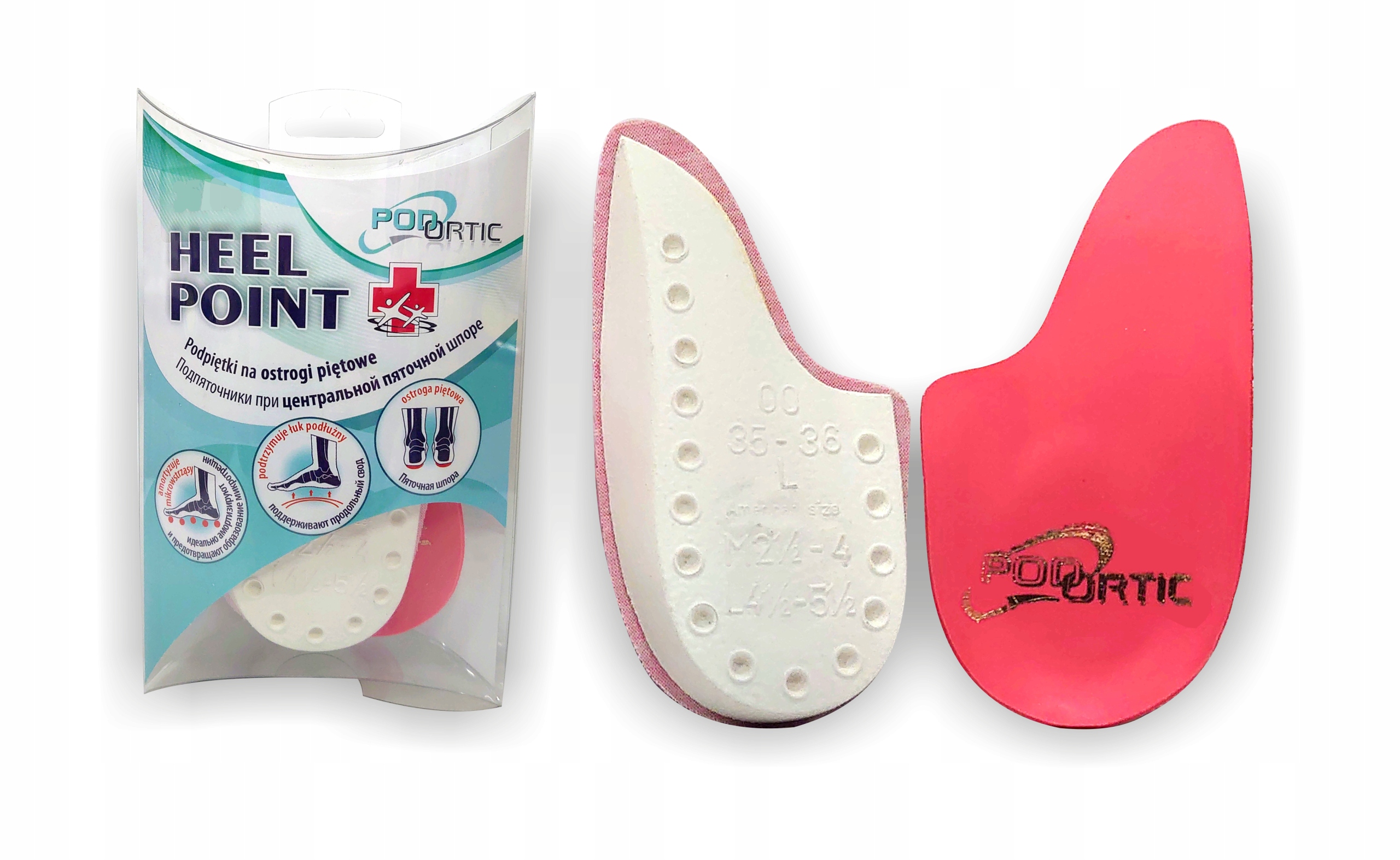 Современные ортопедические подпяточники PodOrtic Heel Point являются медицинским изделием компании IRR высочайшего польского качества. Пяточные шпоры стабилизируют положение пятки в обуви. Предназначен для людей с болями в пятках, вызванными пяточной шпорой. Мягкий диск из пены с эффектом памяти, используемый в центральной части пятки, разгружает шпору, то есть отросток пяточной кости. Пяточные упоры уменьшают ударные силы, действующие через пятку на скелет при ходьбе, снимают давление на задний отдел стопы, а профилированный элемент мягко поддерживает продольный свод стопы. Мягкая пена сильно поглощает микроудары и прекрасно впитывает влагу. Рекомендуется врачами, ортопедами, ортопедами и физиотерапевтами. Рекомендуется для профилактической, ортопедической и стандартной обуви.