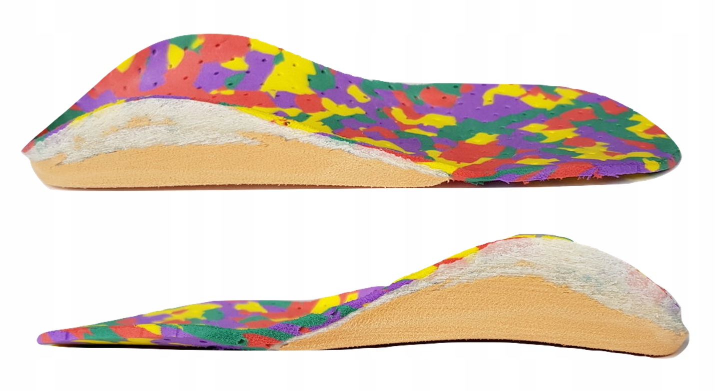 Детские вставки состоят из верхнего дышащего многоцветного/диноформного слоя и нижней части из приятного для ног материала сополимера/диноформа и дерматологически протестировано. Стелька специально профилирована с пропорциональным продольным сводом и формой, обеспечивающей стабилизацию пятки. Внутренняя часть стельки изготовлена из термопластичного материала, обеспечивающего должную твердость и гибкость.