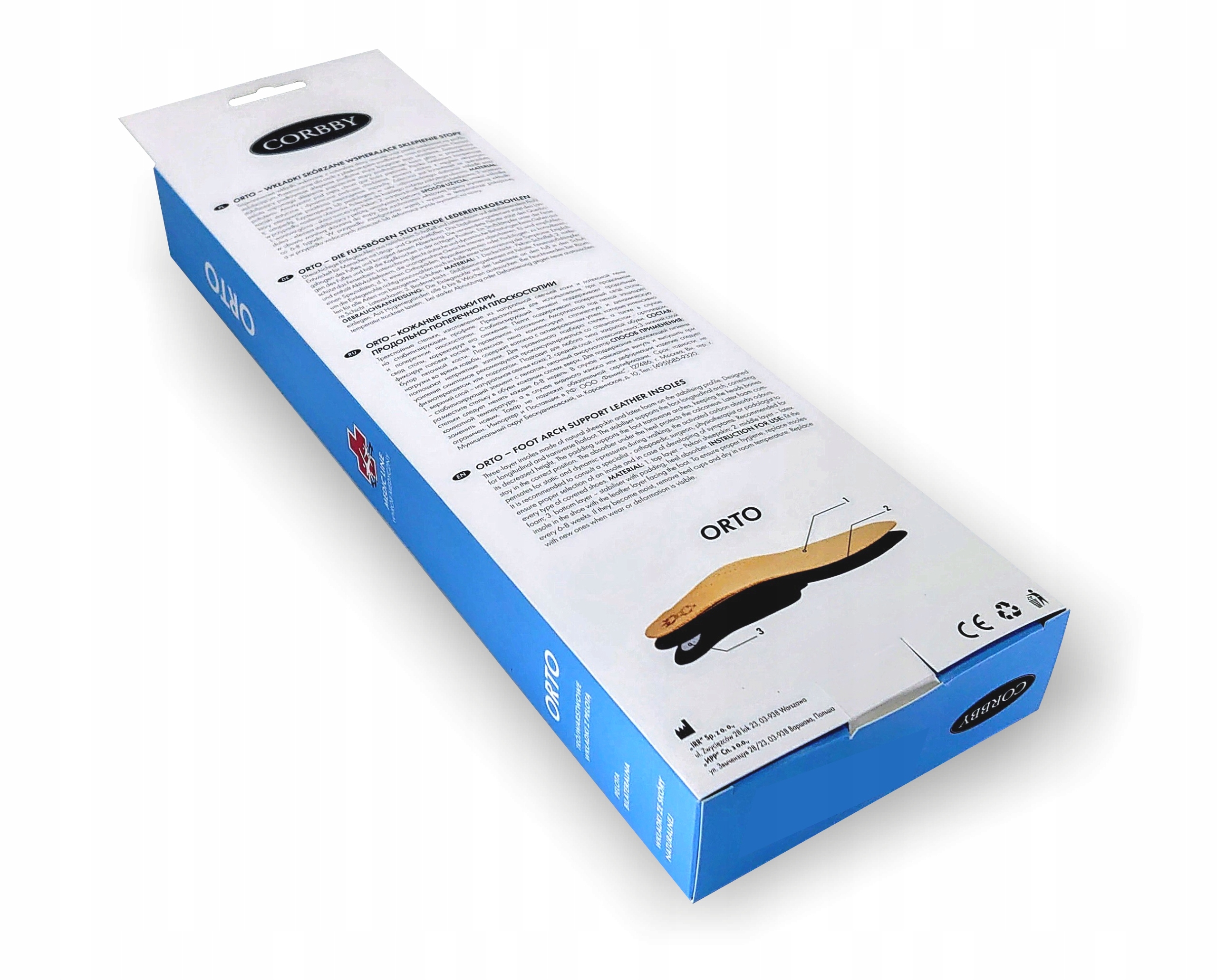 Современные ортопедические стельки CORBBY ORTO Medic Line – это медицинский продукт высочайшего качества от польской компании IRR. Трехслойные профилактические стельки из высококачественной натуральной овчины и латексной пены со стабилизирующим элементом, корректирующим продольное и поперечное плоскостопие. Латексная пена, образующая дно стельки, содержит волокна, обогащенные активным углем, который прекрасно и надолго поглощает все неприятные запахи. Специально профилированный стабилизирующий элемент предотвращает деформацию стельки и эффективно регулирует положение стопы в обуви, поглощая при этом статические и динамические нагрузки, возникающие при стоянии или ходьбе. Латексная накладка постоянно поддерживает поперечный свод стопы, а пяточный упор снимает нагрузку с коленных и голеностопных суставов, защищает плюсневые мышцы и облегчает симптомы, вызванные плоскостопием. Рекомендуется для всех типов обуви.