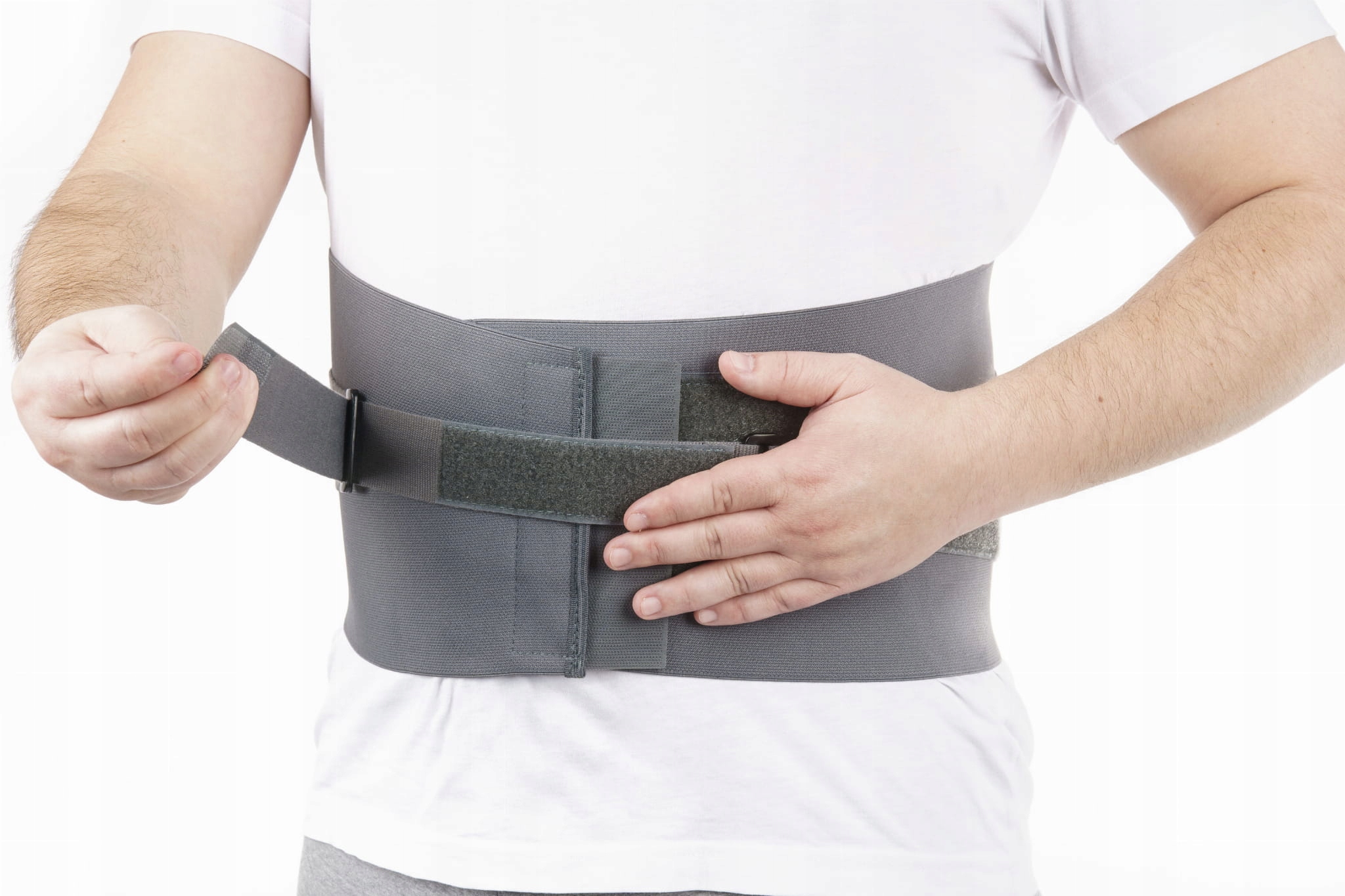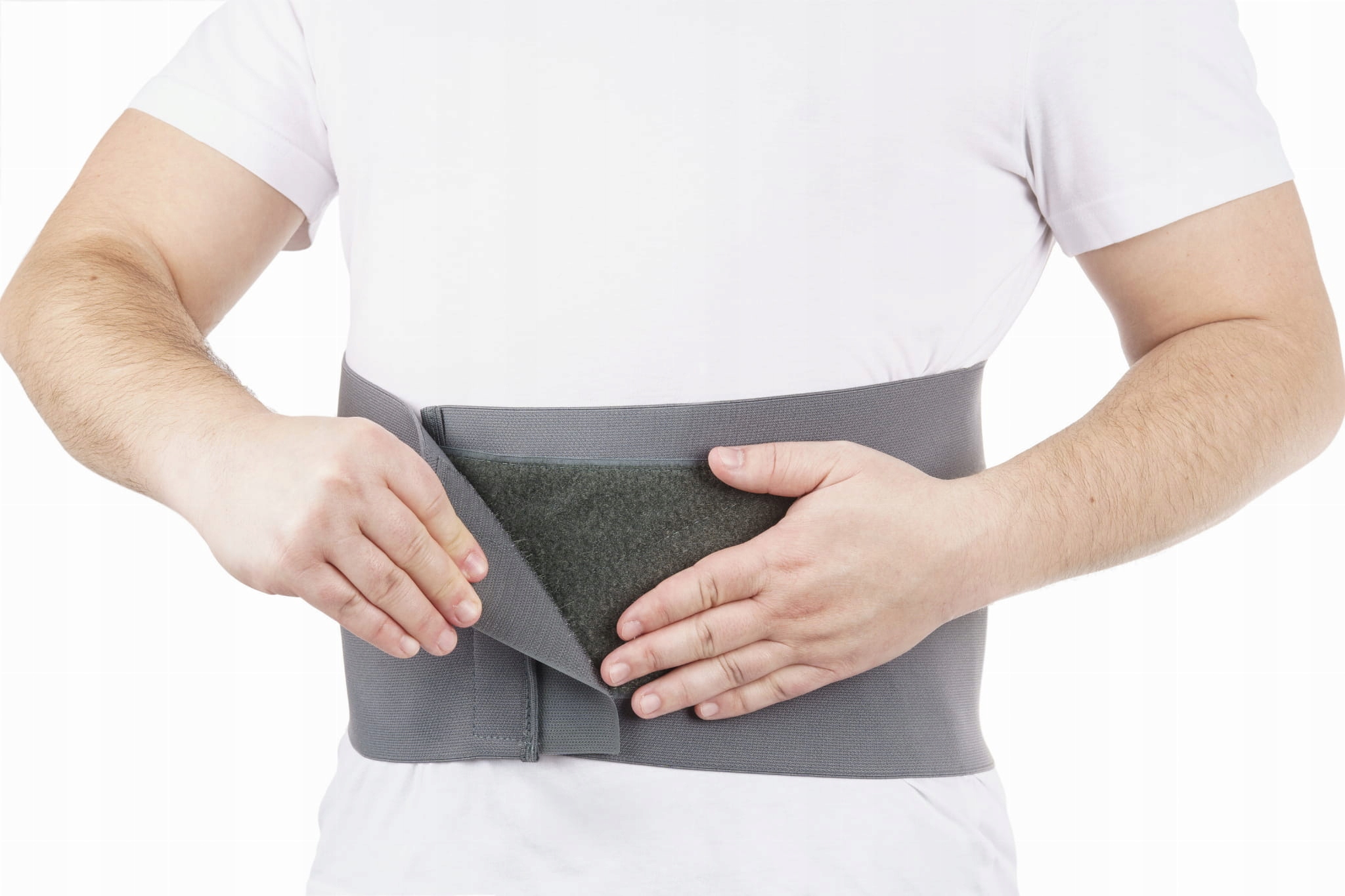 Пояснично-крестцовый пояс будет выполнять свою функцию только в том случае, если он правильно расположен на теле пациента. Точное позиционирование облегчается благодаря двойной системе крепления. Установив ремень в соответствующем месте, закрепите его на животе с помощью большой и прочной липучки, а затем отрегулируйте по ширине талии пациента. дополнительный прочный пояс. Большой диапазон регулировки позволяет легко контролировать силу прижима.