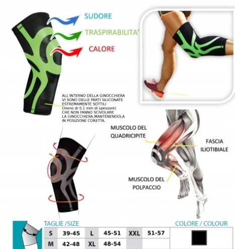 Поддерживает биомеханический эффект движения, снижая нагрузку на суставы и обеспечивая ощущение защищенности и стабильности. Он также закрывает верхнюю часть колена, уменьшая вибрацию мышц в этой области.