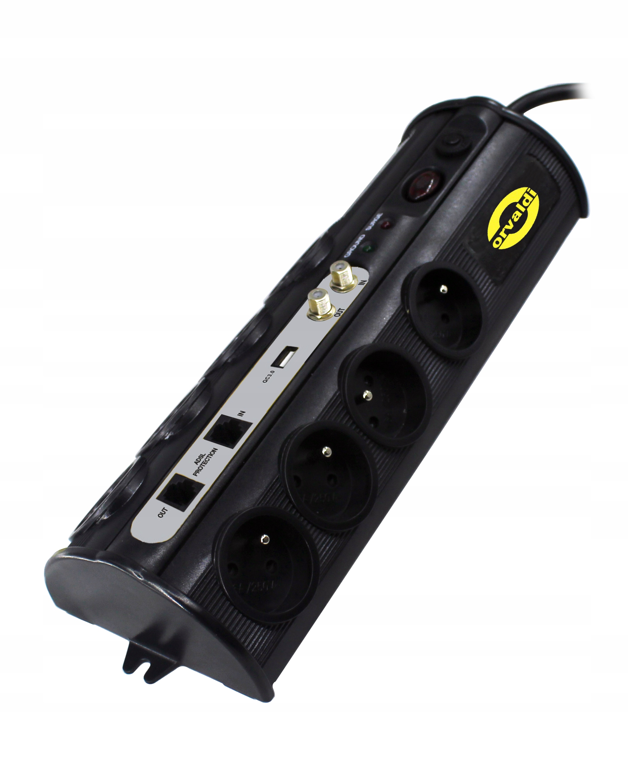 Новый силовой фильтр Orvaldi Orv-8 Home PL с кабелем 3M 16A, сильным зарядным устройством USB 3.0 и дополнительной защитой на локальной сети RJ45 RJ45 и телевизоре SAT (2x коаксиальный) черный цвет