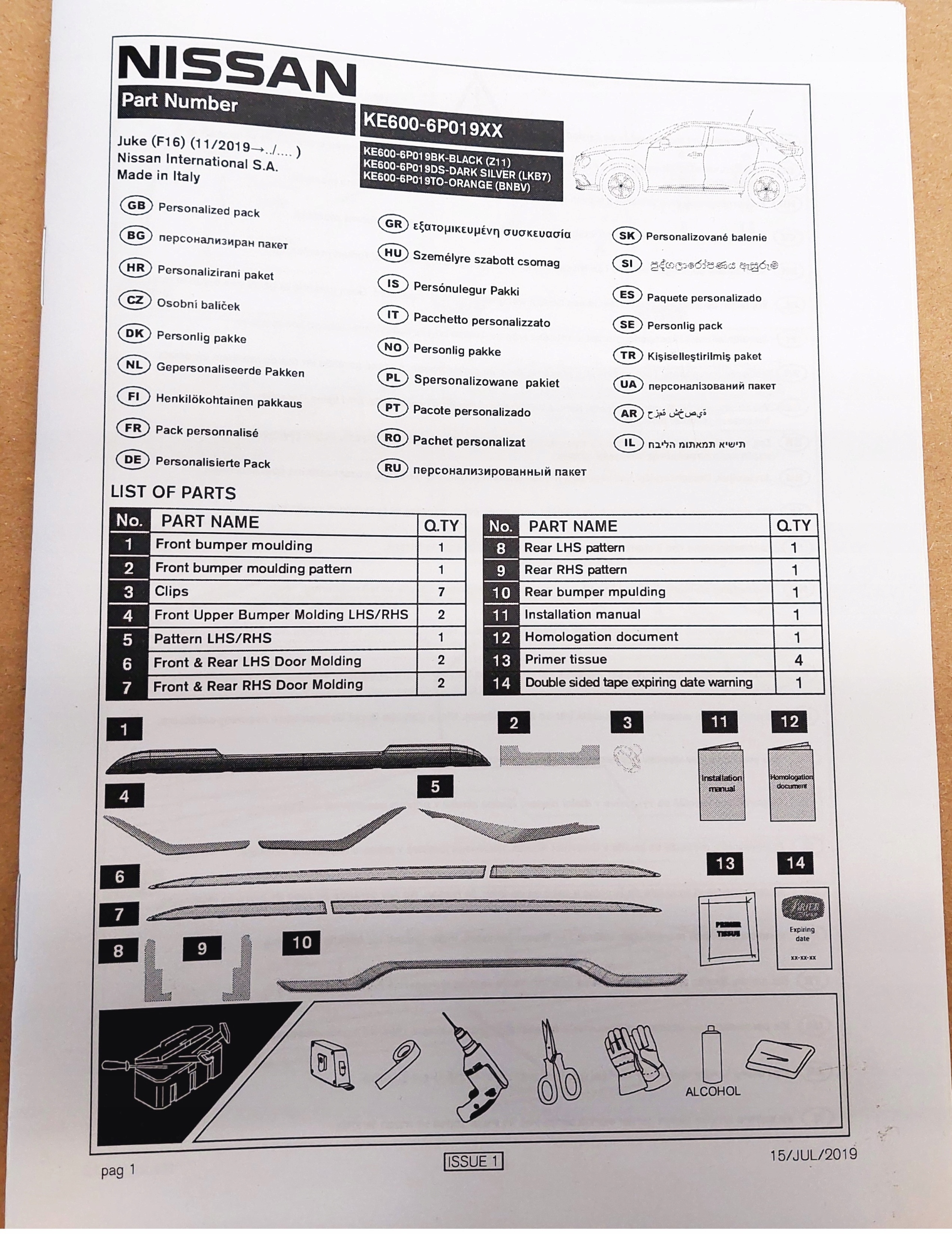 ORYGINAŁ NISSAN GROUP LISTWY OZDOBNE ZESTAW KE600-6P019-TO NISSAN JUKE F16