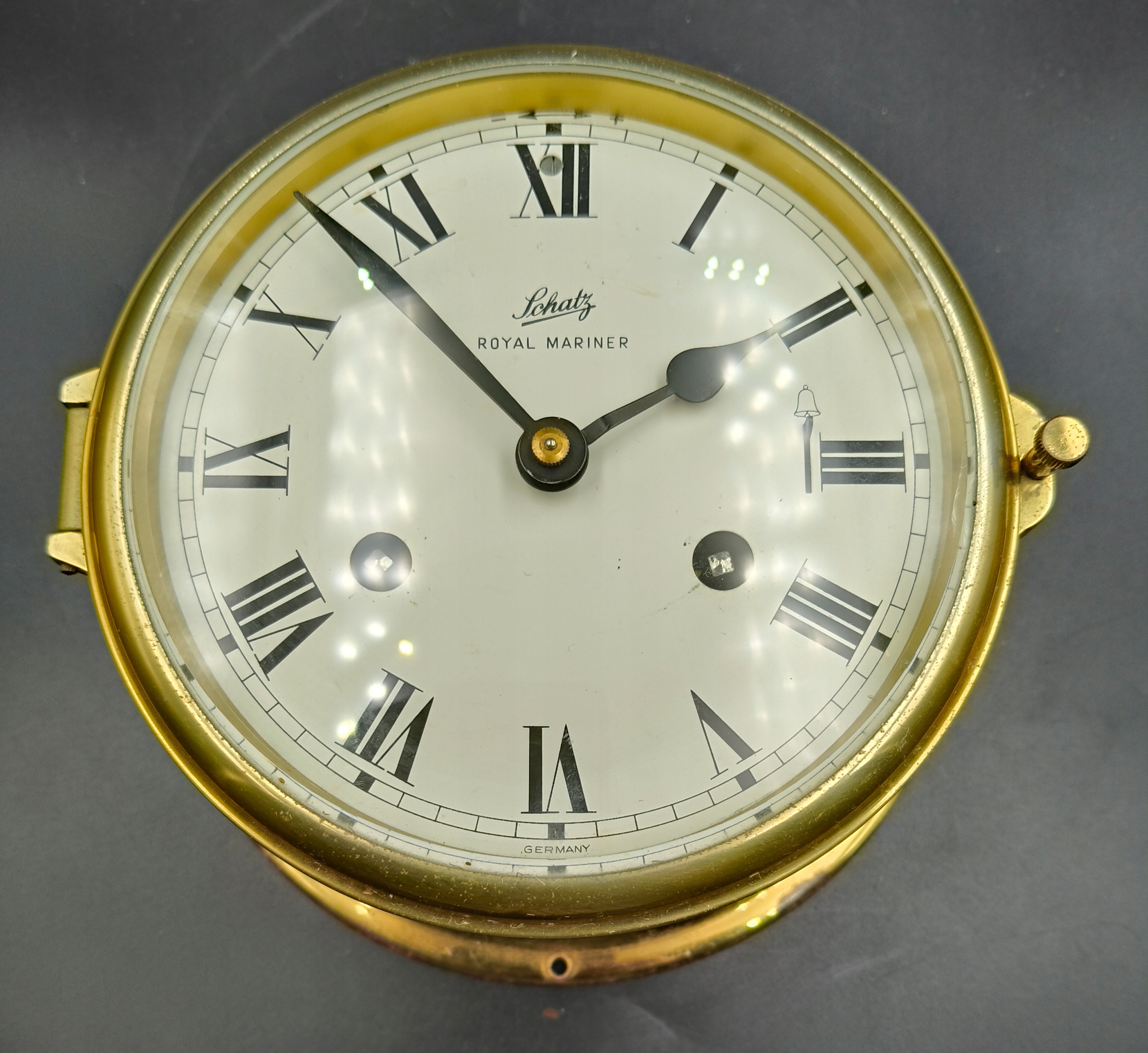 Oryginalny zegar okrętowy Schatz Royal Mariner z gongiem sprawny klucz kpl