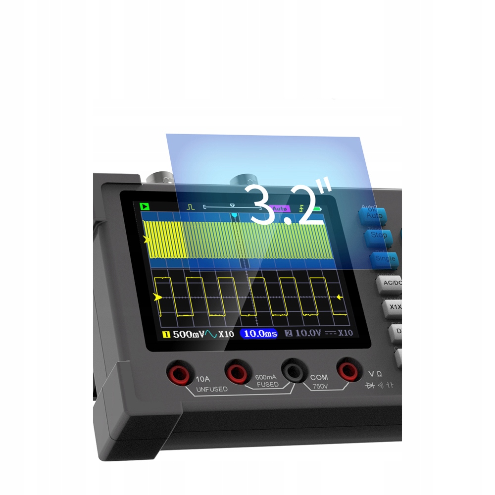 【Дизайн 3 в 1 с IPS-дисплей 】: Этот продукт блестяще объединяет функции цифрового осциллографа, мультиметра и генератора сигналов в одном устройстве. 3,2-дюймовый IPS-дисплей с четким разрешением, полным обзором и высокой чувствительностью, сигналы канала 2 можно установить на зеленый/голубой/фиолетовый цвет.