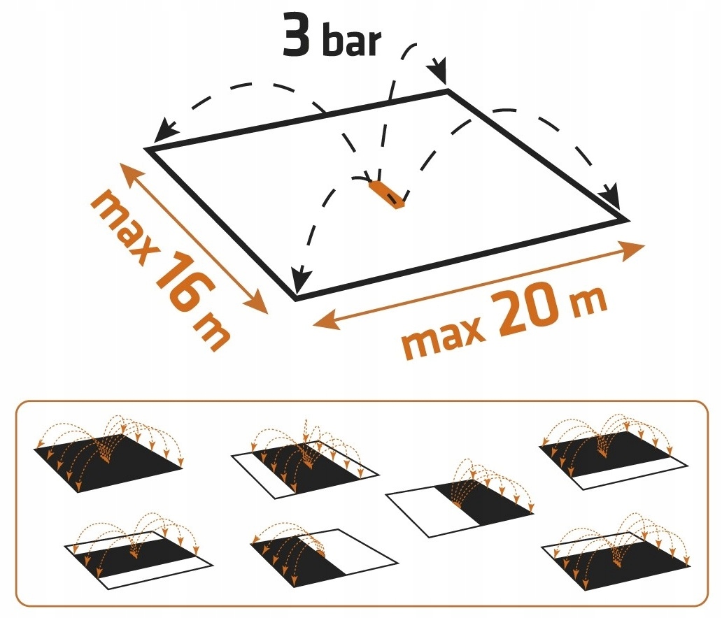 ⭐ Поливает территорию максимальными размерами 16 х 20 м.
