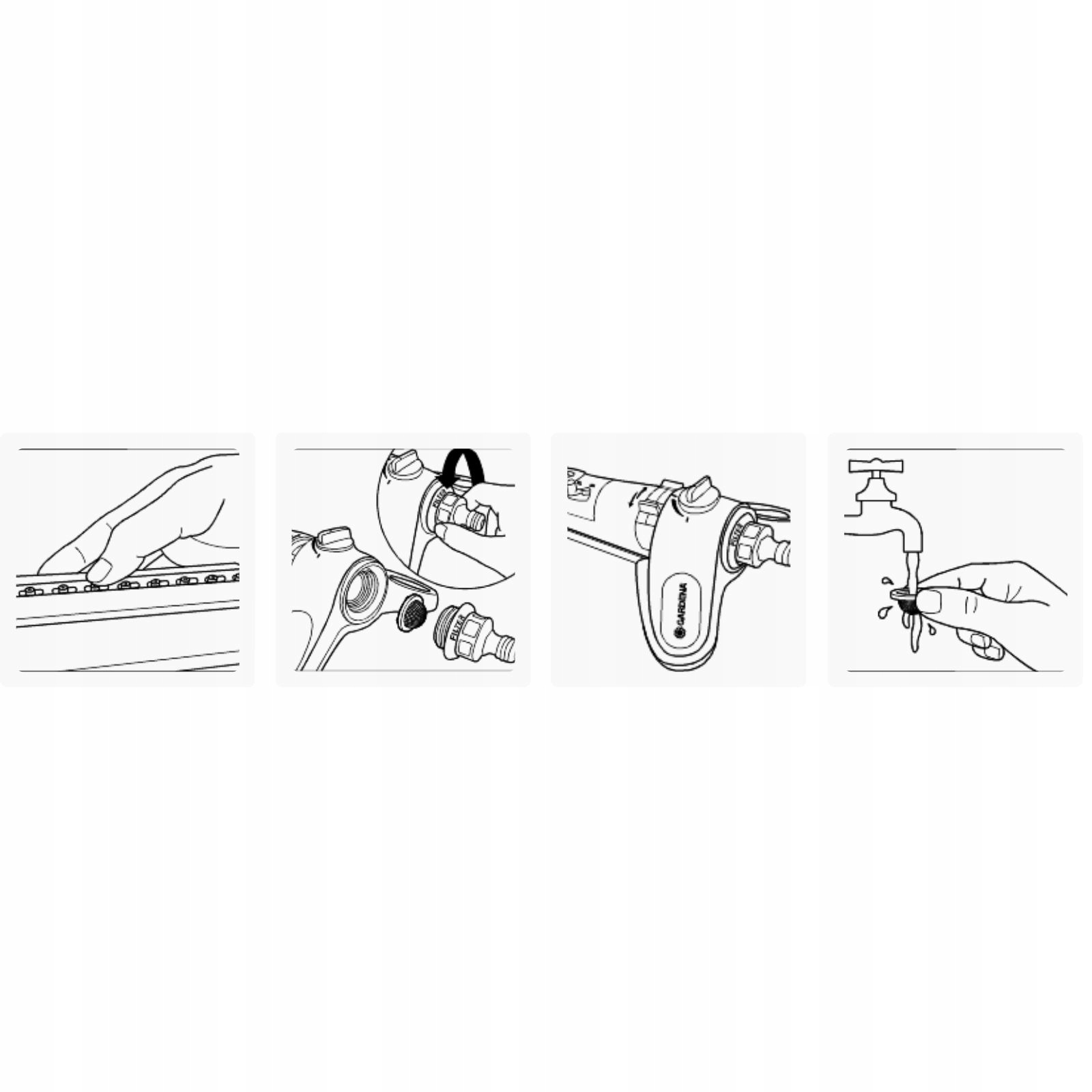 Подключение воды AquaZoom S оснащено металлическим фильтром из нержавеющей стали, который предотвращает попадание частиц грязи в поворотный разбрызгиватель. Фильтр можно снять и легко очистить под проточной водой. Насадки изготовлены из мягкого материала, поэтому для их очистки достаточно протереть пальцами.