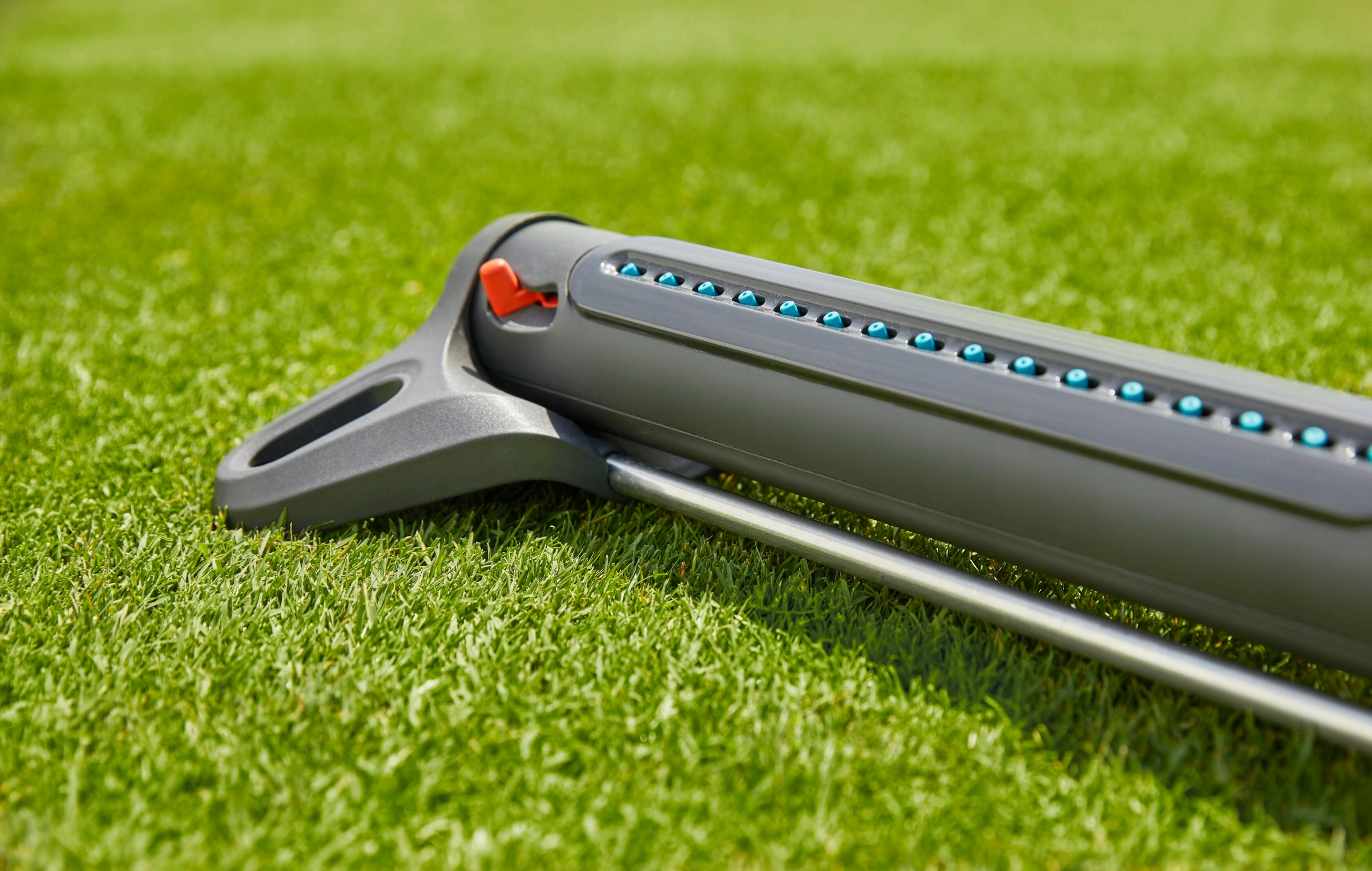 Точный, равномерный и универсальный полив небольших газонов В Aqua Zoom S от GARDENA есть все необходимое для надежного полива газонов. Подходит для площадей от 9 до 150 м², обеспечивает равномерный и точный полив без образования луж. Воспользуйтесь преимуществами каждого момента лета.Многочисленные варианты конфигурации разбрызгивателей требуют только использования ползунка. Дальность опрыскивания можно установить от 3 до 15 метров, а ширину опрыскивания от 3 до 10 метров, с возможностью полива только с одной стороны. Вы также можете точно настроить радиус действия, регулируя поток воды. Благодаря двум широким ножкам, имеющим современный и привлекательный внешний вид, ороситель всегда устойчив. Однако дизайн – не единственное преимущество этого продукта: качественные материалы делают AquaZoom устойчивым к морозу и УФ-излучению. Дополнительным признаком, подтверждающим качество, является маркировка Made in Germany и гарантия 5 лет, подчеркивающая высокую долговечность оросителя. Этот садовый инструмент легко чистится благодаря насадкам из мягкого материала. Чтобы очистить их, просто проведите по ним пальцами, удаляя скопившуюся на них накипь. Соединение для воды оснащено фильтром из нержавеющей стали, предотвращающим попадание грязи в AquaZoom S. Поверните соединение пальцами, и вы увидите фильтр, который легко снимается. Подержите некоторое время под проточной водой, и фильтр снова станет чистым.