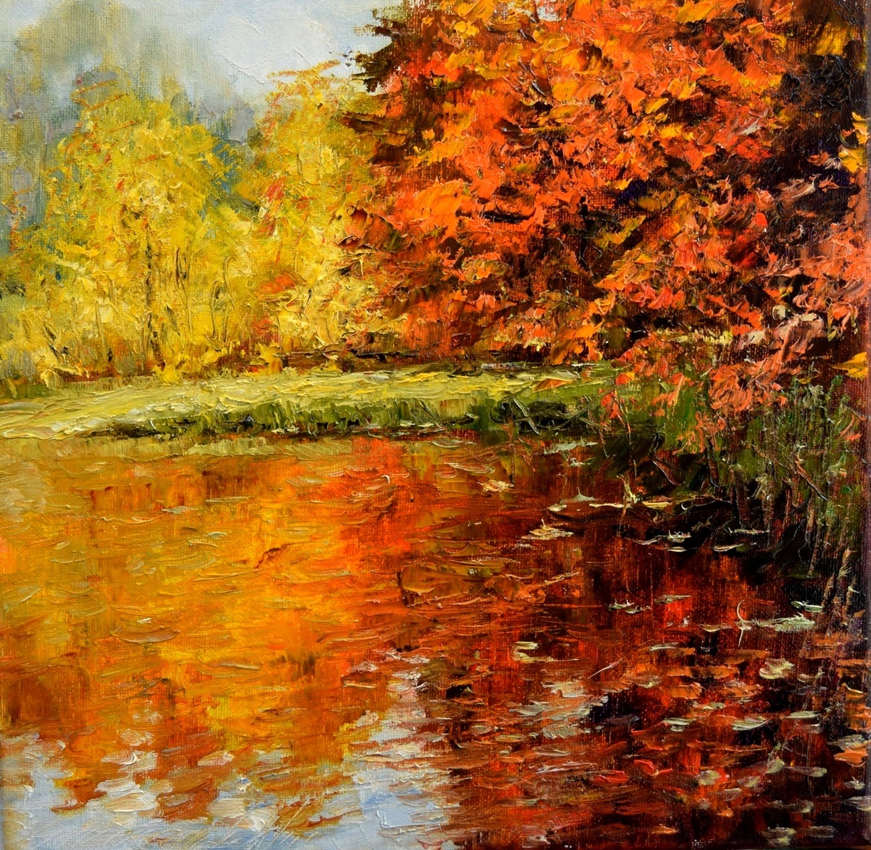 Осень "масляная живопись на холсте 30x30 см, оригинальный Potter Al ,,,