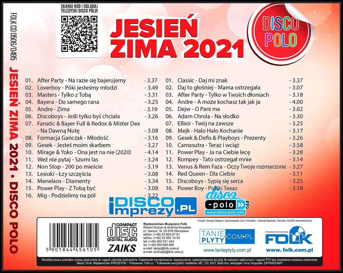 Оплачивая «ОСЕНЬ-ЗИМА 2021 - ХИТЫ ДИСКО-ПОЛО НОВИНКИ 2020 ГОДА, 2CD», вы можете быть уверены, что данное изделие из каталога «Диско-поло, гуляка, караоке» будет доставлено из Польши и проверено на целостность. В цене товара, указанной на сайте, учтена доставка из Польши. Внимание!!! Товары для Евросоюза, согласно законодательству стран Евросоюза, могут отличаться упаковкой или наполнением.
