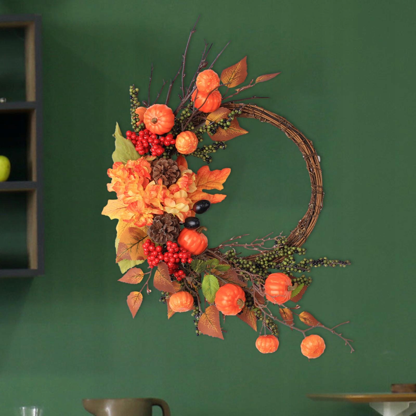 [Особенности]: Внешний диаметр составляет около 50 см/19,69 дюймов, яркие цвета и тыквы делают венок отличным дополнением к дому.