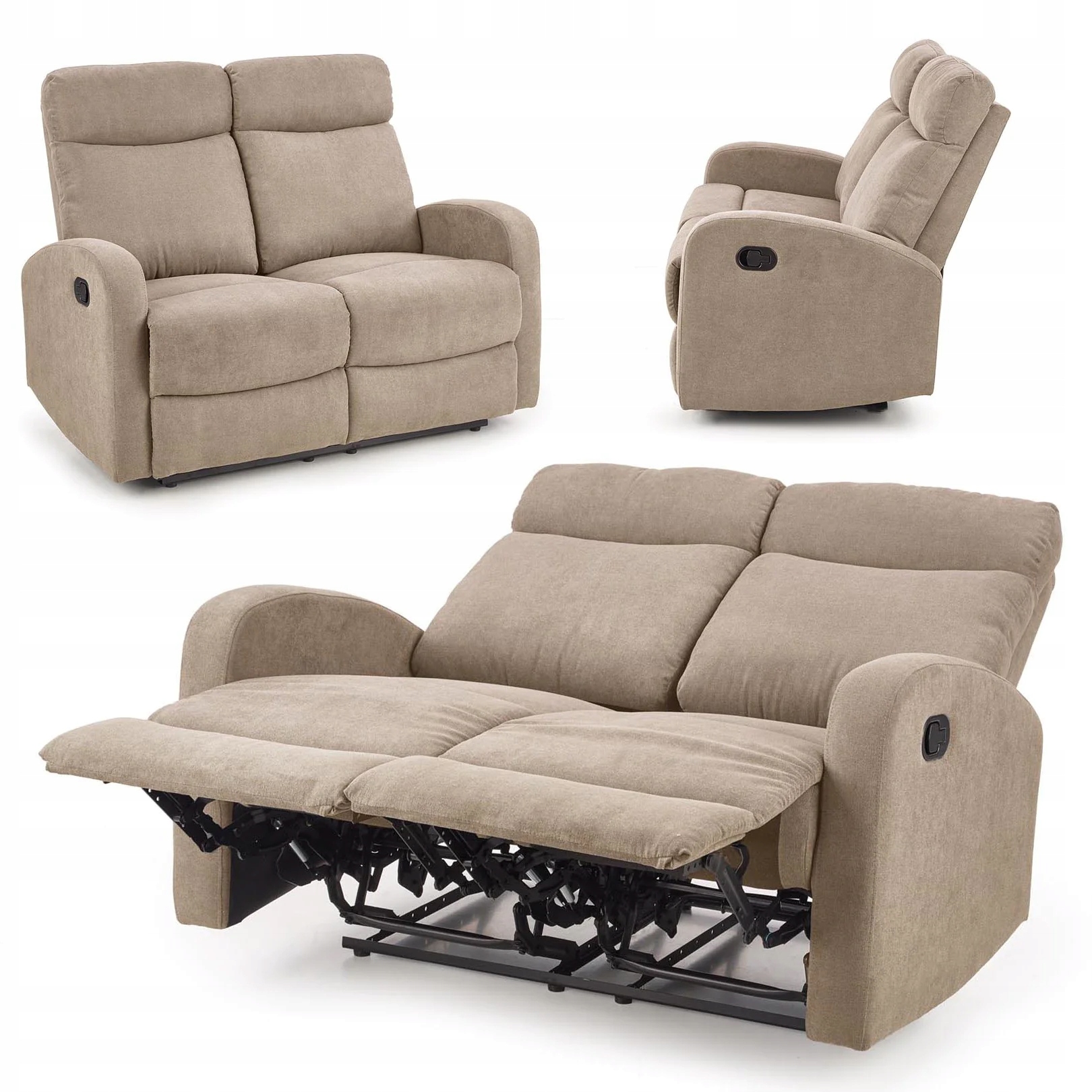 Двухместный диван, комплект из 2 двуспальных кресел с откидной спинкой OSLO 2S Бежевый Халмар