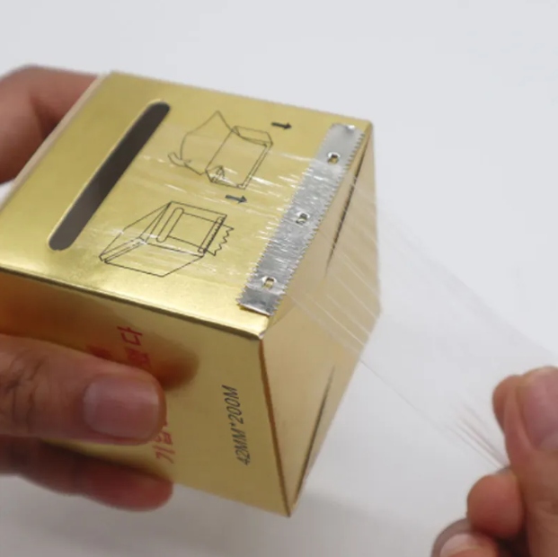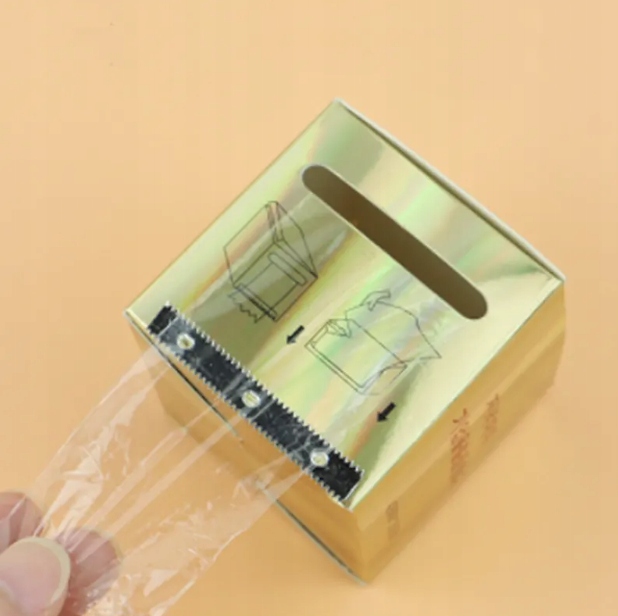 Фольга помещена в картонную коробку с ножом, позволяющим легко и быстро отрезать любой участок фольги.