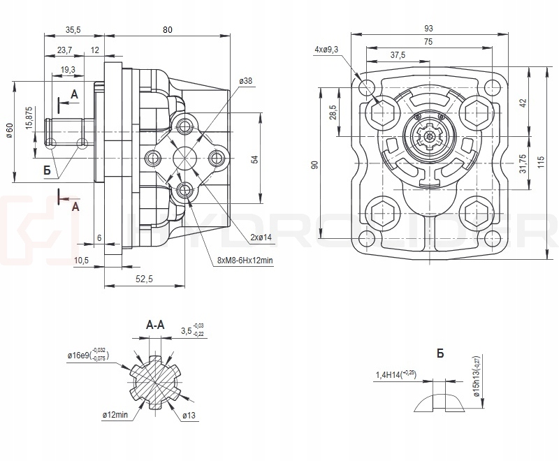 The T-25 hydraulic pump drive attachment h1> Hydrosila NSZ 10 + h2> hydraulic pump Hydrosila NSZ 16 h2>