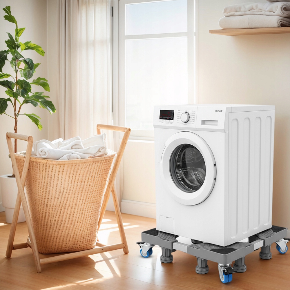 ➡️ Качественные материалы: Каркас стиральной машины изготовлен из высококачественной нержавеющей стали и пластика, что обеспечивает превосходную стабильность и устойчивость к коррозии. Максимальная нагрузка 250 кг. Рама стирально-сушильной машины оснащена транспортировочными колесами с возможностью поворота на 360°, которые решают проблемы отвода воды и очистки, а также предотвращают появление ржавчины.