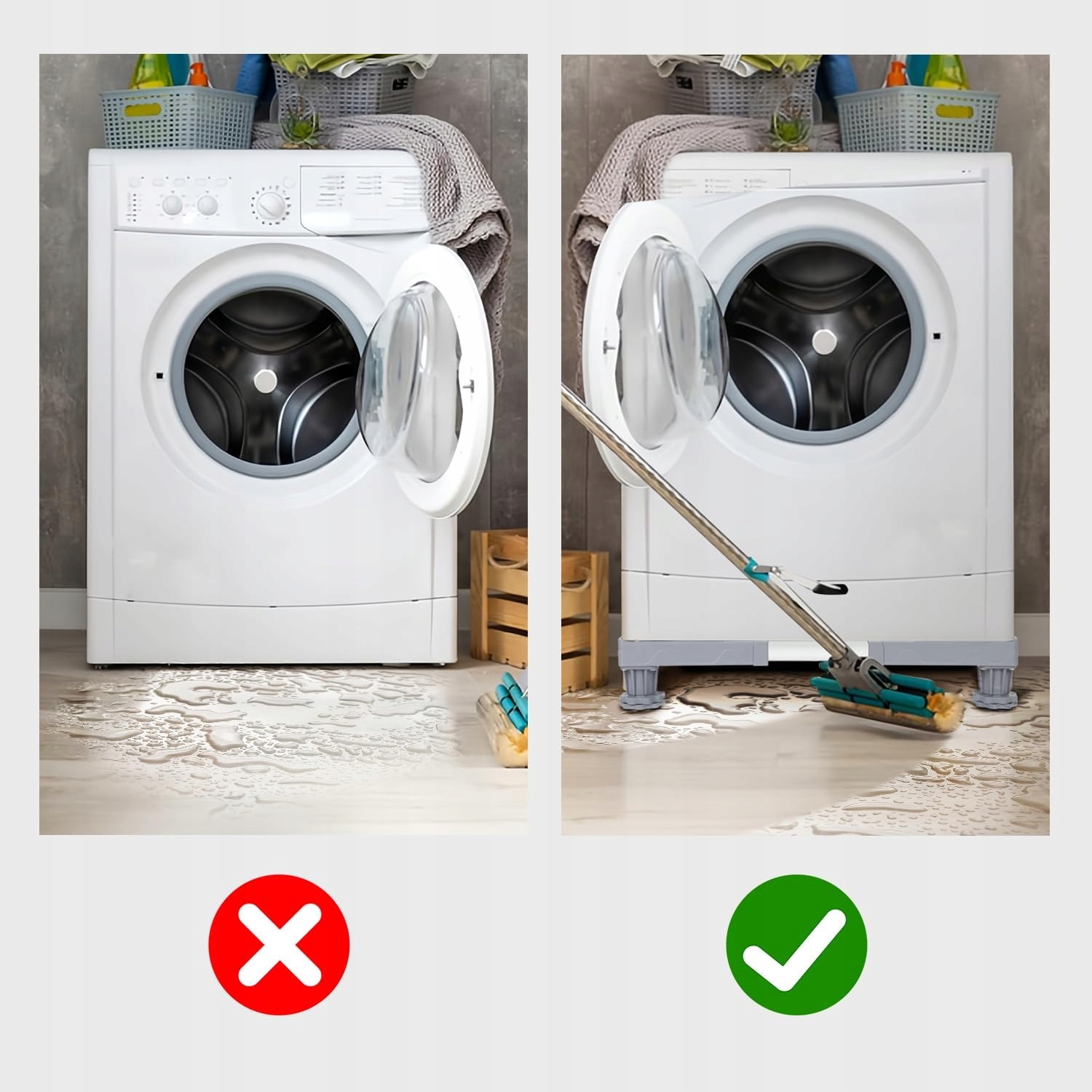⚙️⚙️ Стабильность и низкий уровень шума: Резиновые подушечки на каждой ножке увеличивают сцепление, защищают полы и защищают подушечку от ударов во время использования. Никогда больше не беспокойтесь о шуме стиральной машины