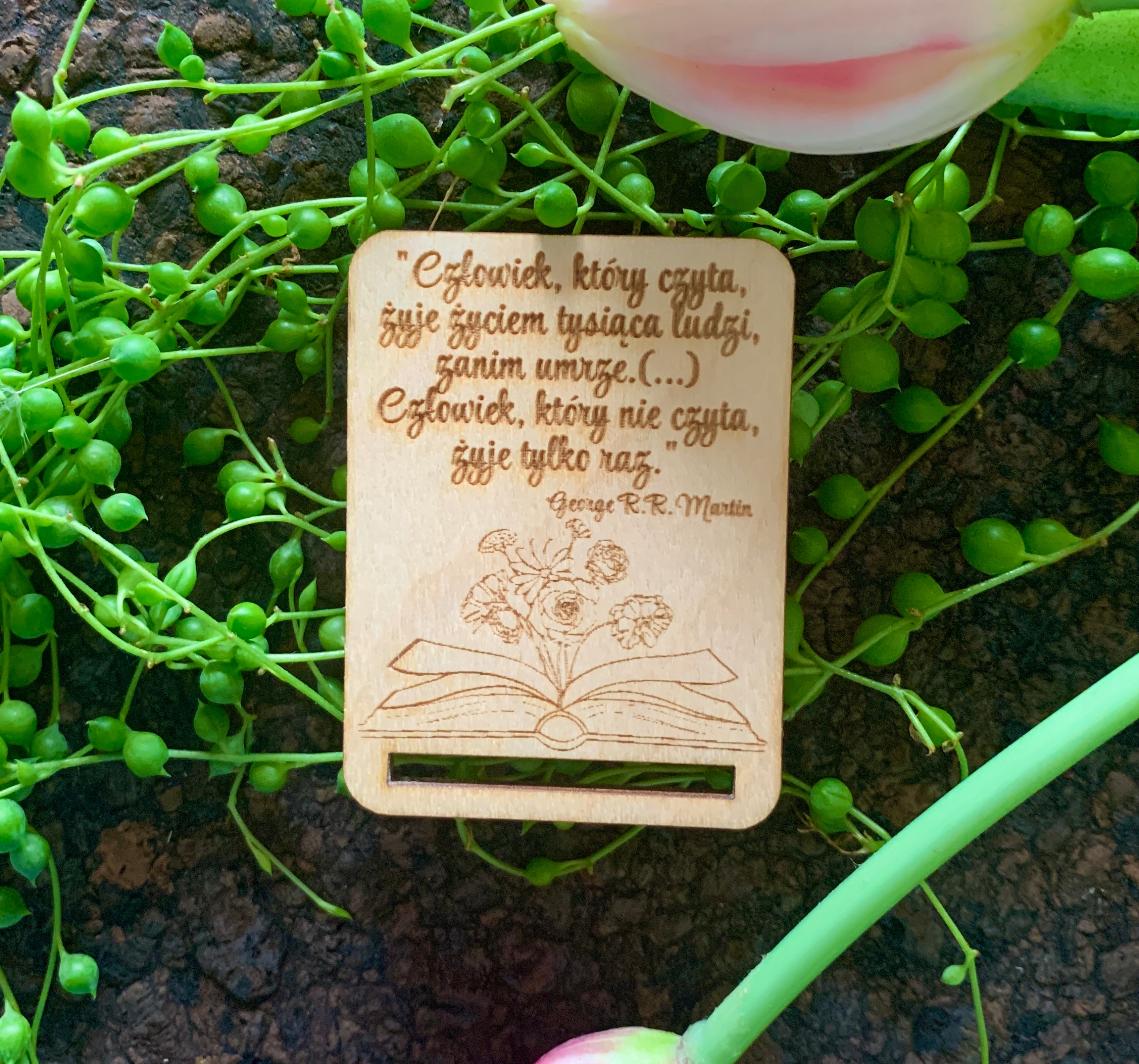 Предмет продажи - деревянная основа для закладки с книгой и цветочным мотивом и надписью. Текст готов, но вы также можете ввести свой текст. На аукционе представлено одно произведение.