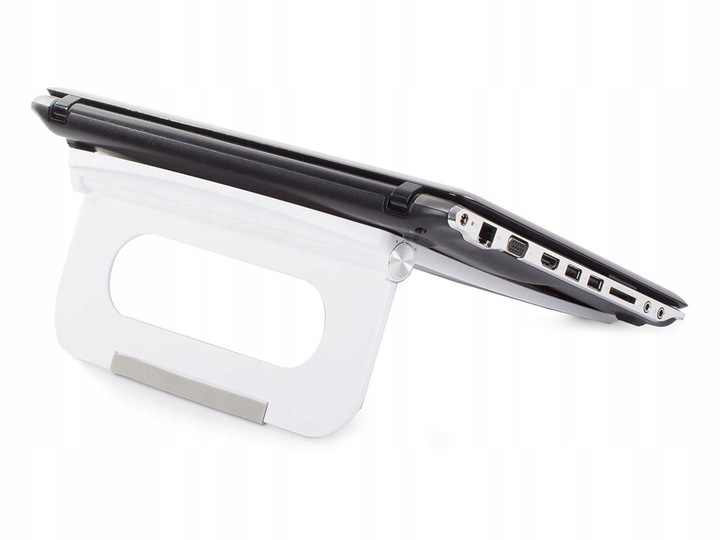 Складная подставка для планшета или ноутбука с плавной регулировкой наклона от 0 до 130°. Подставка имеет вентиляционные отверстия для предотвращения перегрева устройства и встроенные нескользящие силиконовые накладки.