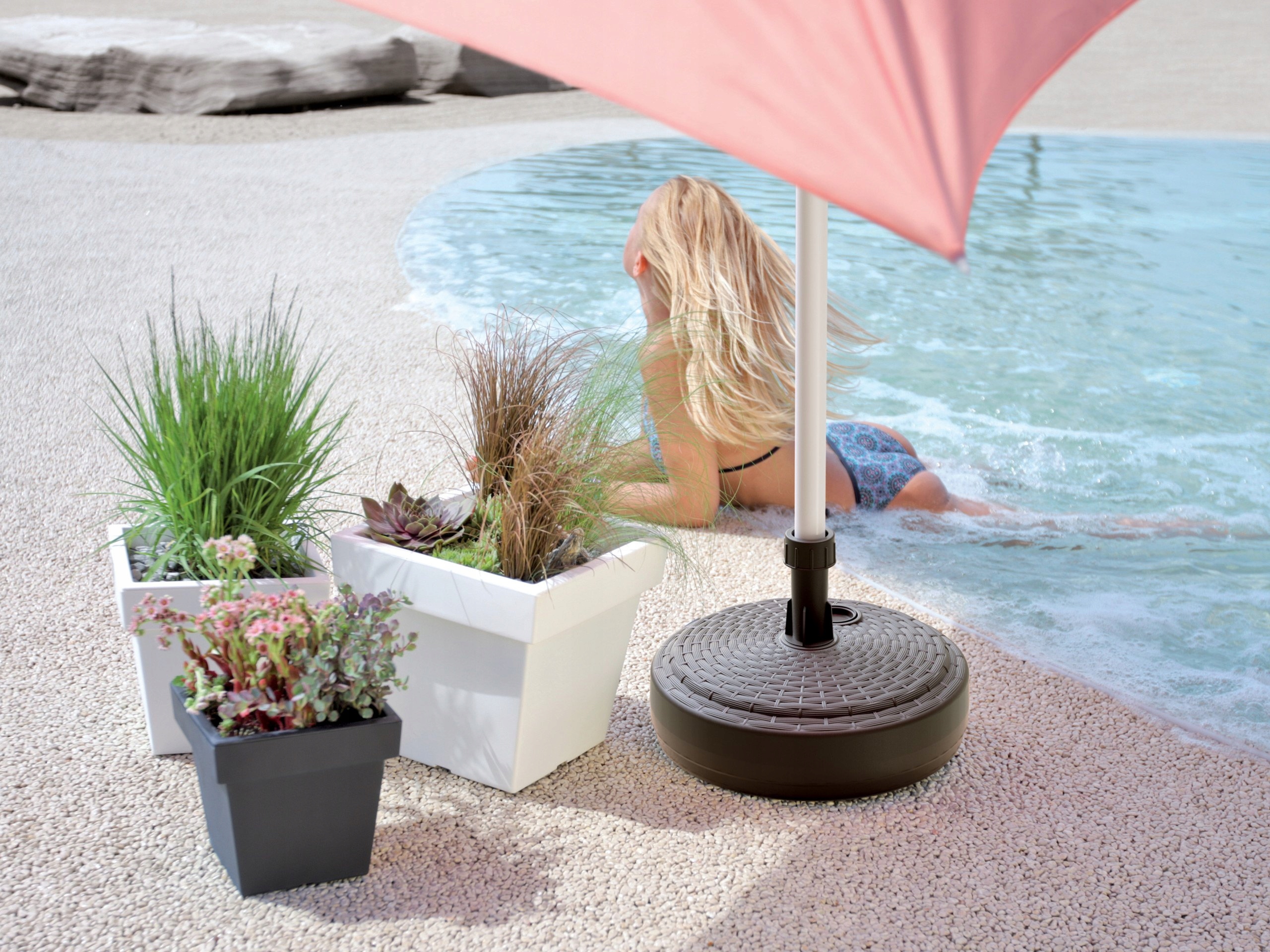 Здесь важно правильно подобранное основание, гарантирующее нам безопасность и максимальную устойчивость зонта, которую Umbrella Base обретает только после полного заполнения его смесью песка и воды или гравия.