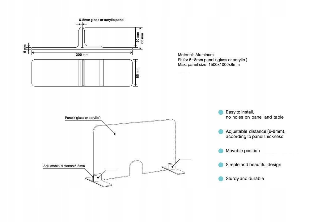 Основа перегородки PLEXI, алюміній / 2 шт.