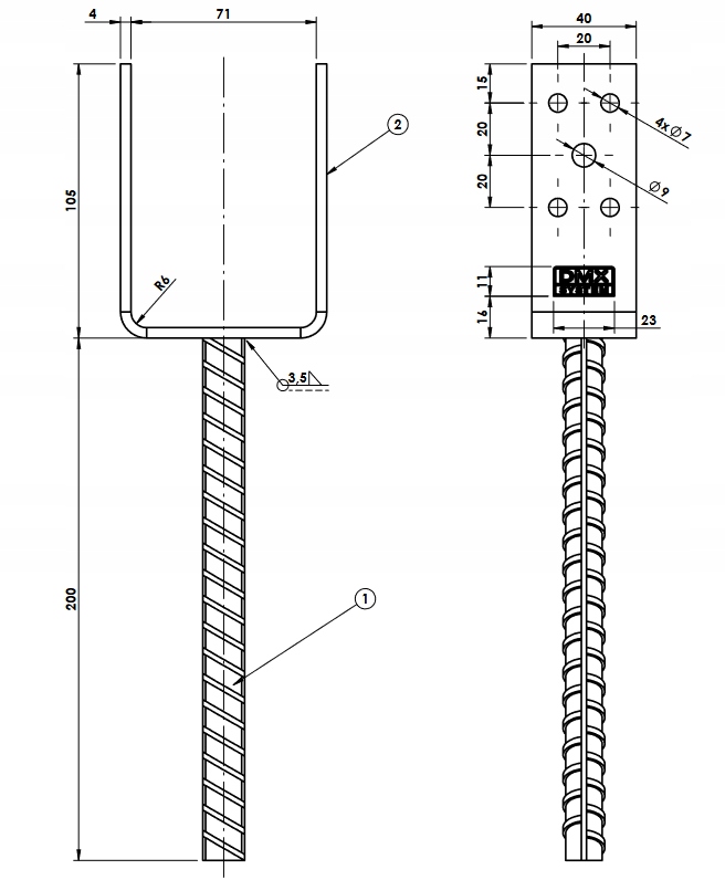 Основание полюса для укладки PSL70U Бетон Bocton 71x100x40 Ocynk M16