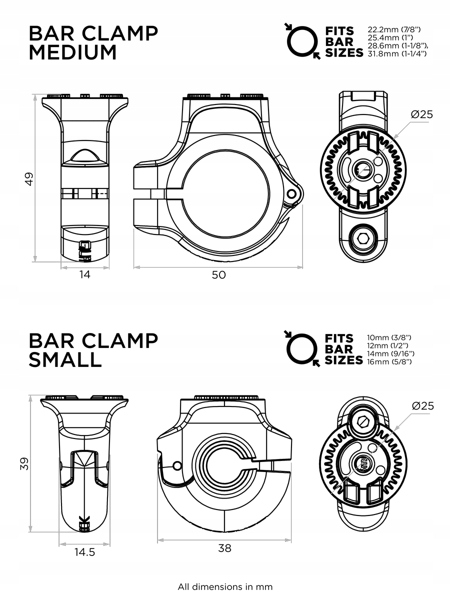 Выберите средний или маленький зажим в соответствии с размером вашей перекладины.